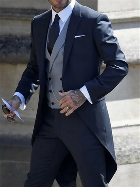 Men's 3 Pieces Italian Fashion Set™ Long Tail Coat Groom Prom Tuxedos (Jacket +Pants +Vest)