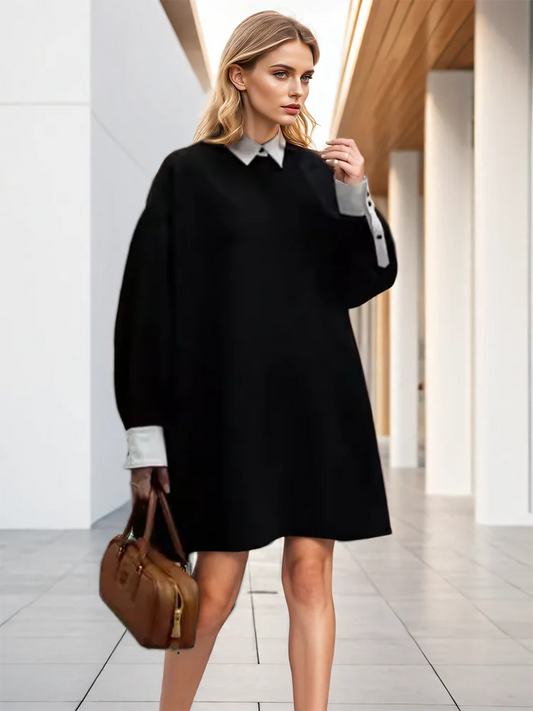 Women's Shirt™ Lapel Loose Fit Single Breasted Long Sleeve Contrast Color Tide Shirt