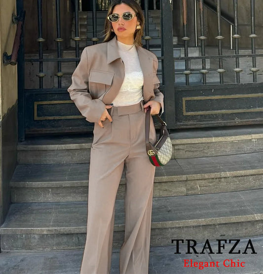 Women's Suits™ Short Jackets & Chic Wide Leg Pants Set