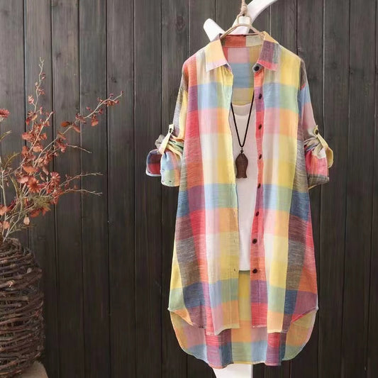 Women's Plus Size Loose Plaid Blouse™ Mid Length Long Sleeve Cotton Shirt Outwear