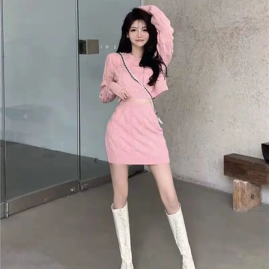 Women's Two Piece of Pullover™ Autumn/Winter Knitted Short Sweater and Skirt