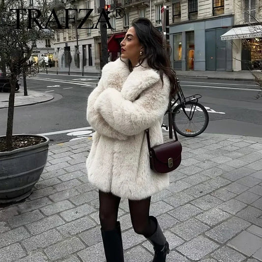Women's Faux Fur Coat™ TRAFZA Female Chic Chill Long Sleeve Casual Warm Thicken Coat