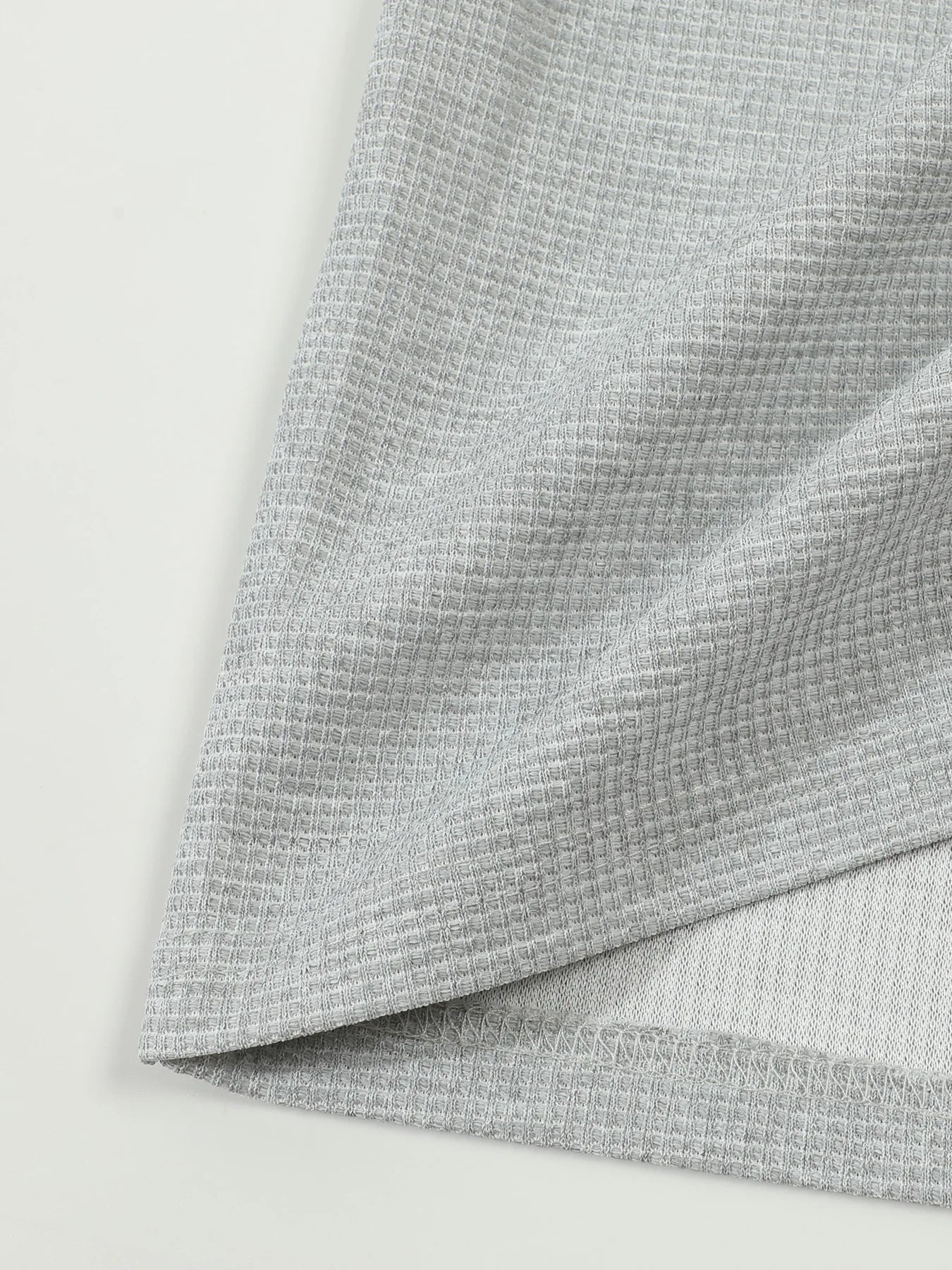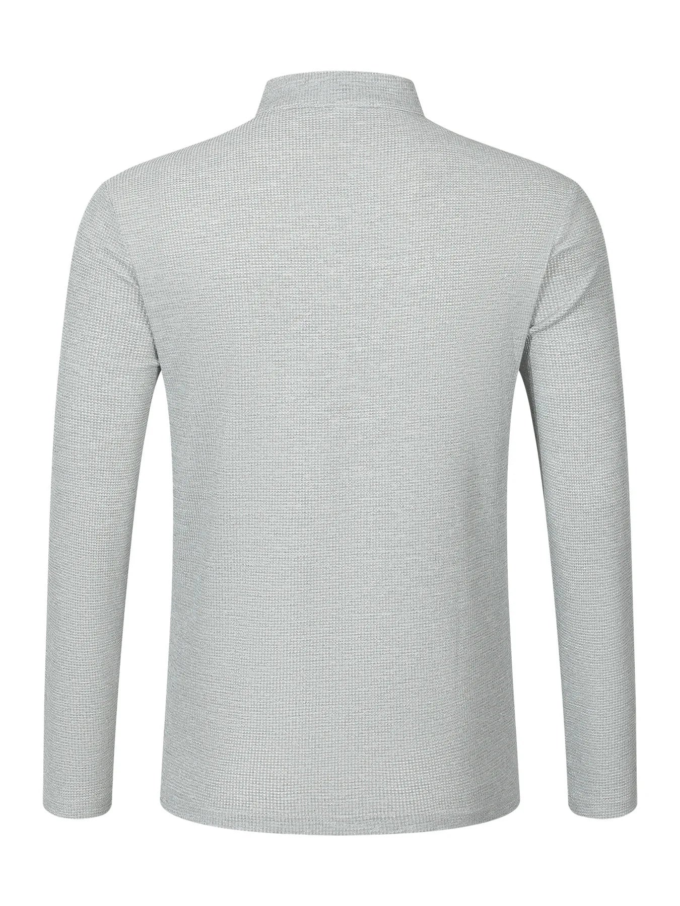 Men's casual waffle check long-sleeved shirt™ stand-up collar button semi-cardigan