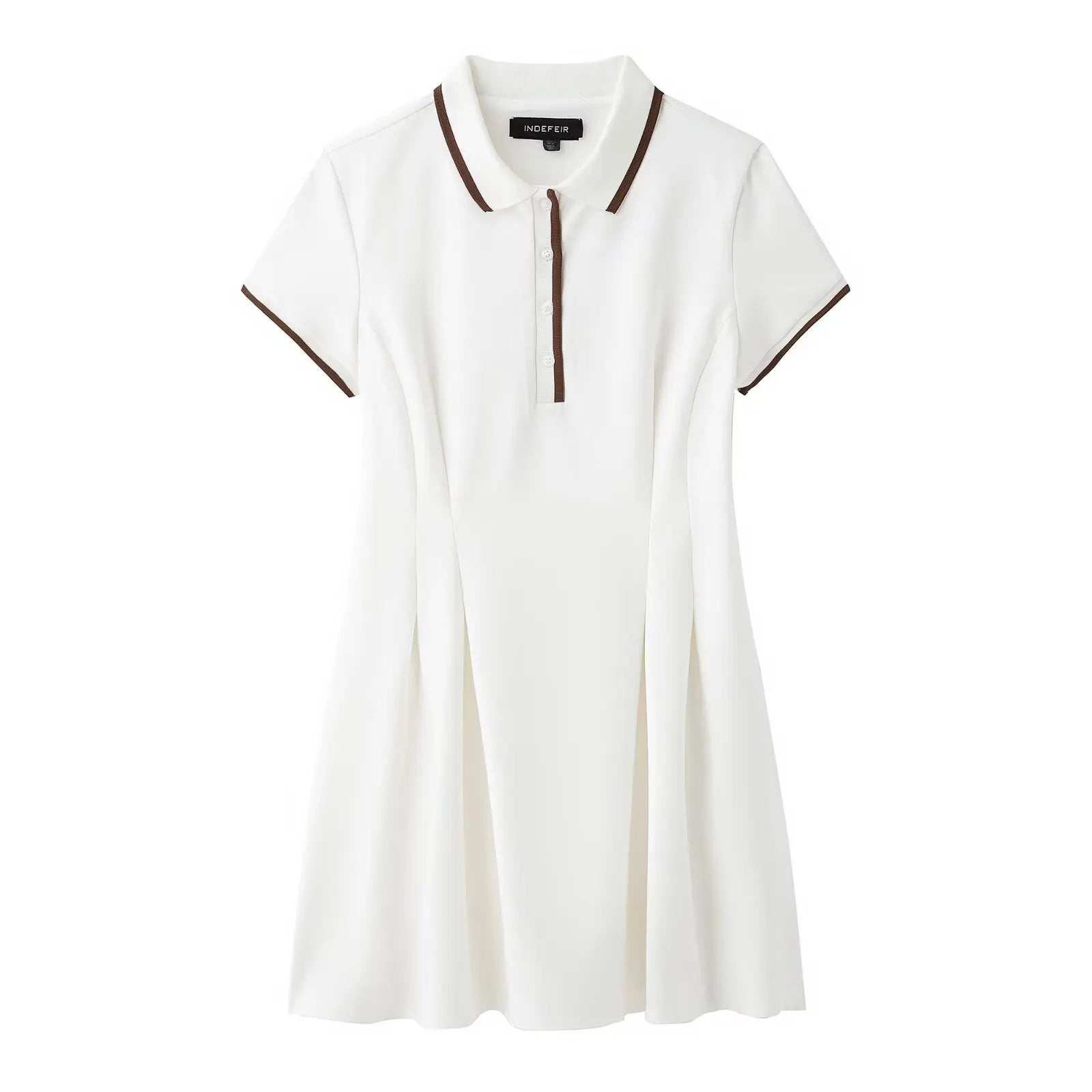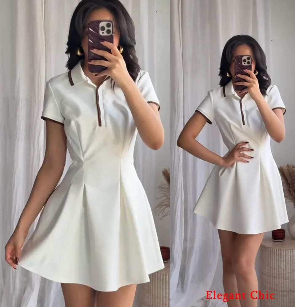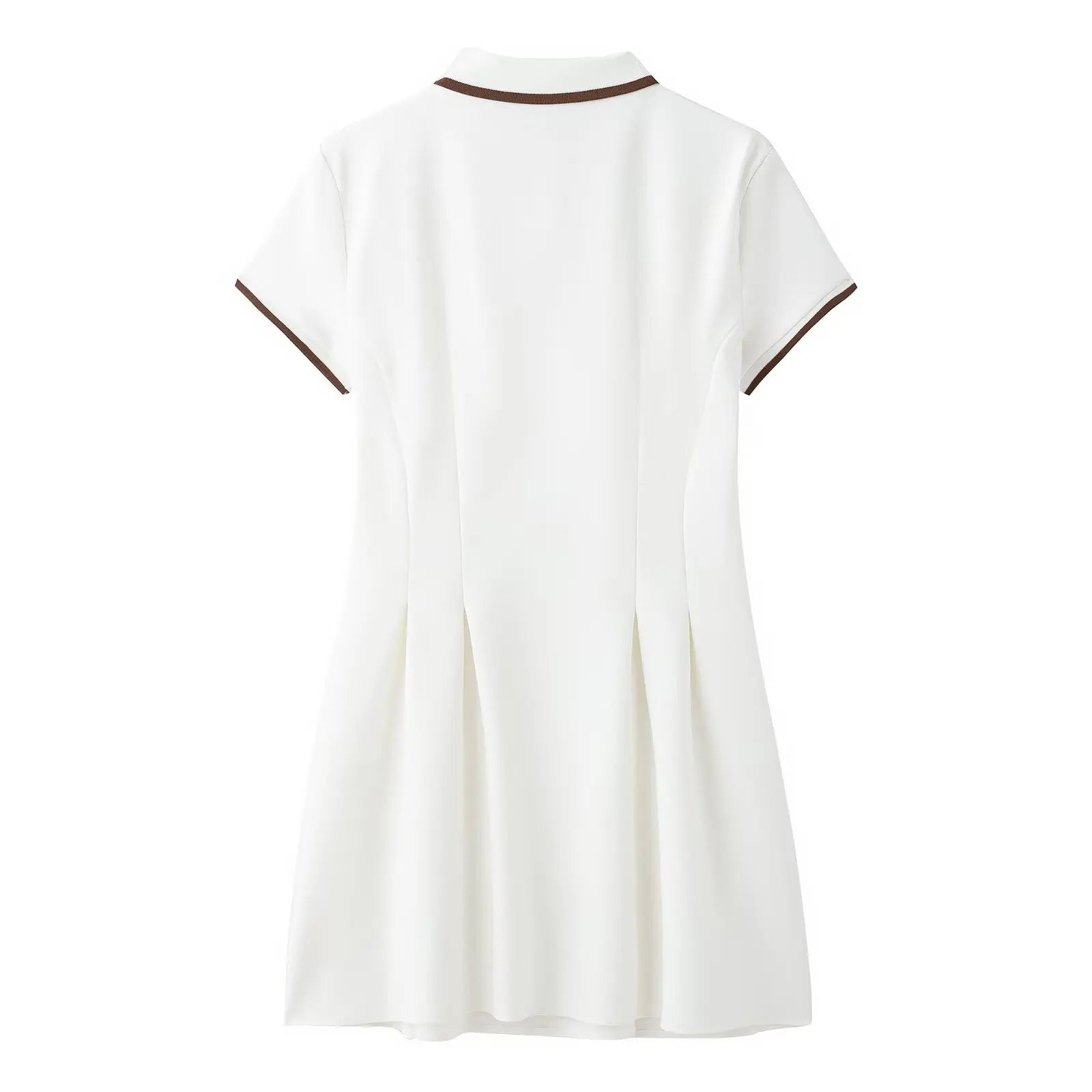 TRAFZA-Women's Burgundy Dress™ Contrasting Ribbed Lapel Buttons Classic Campus Dress