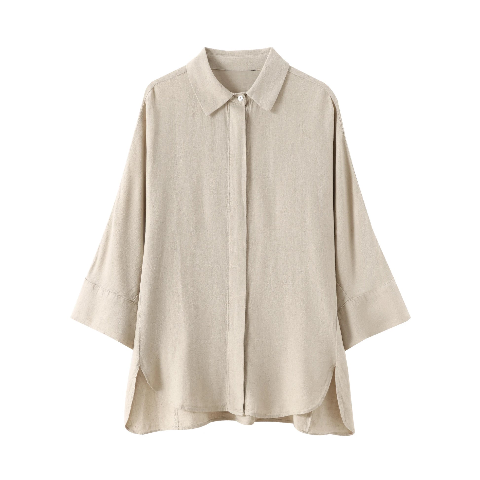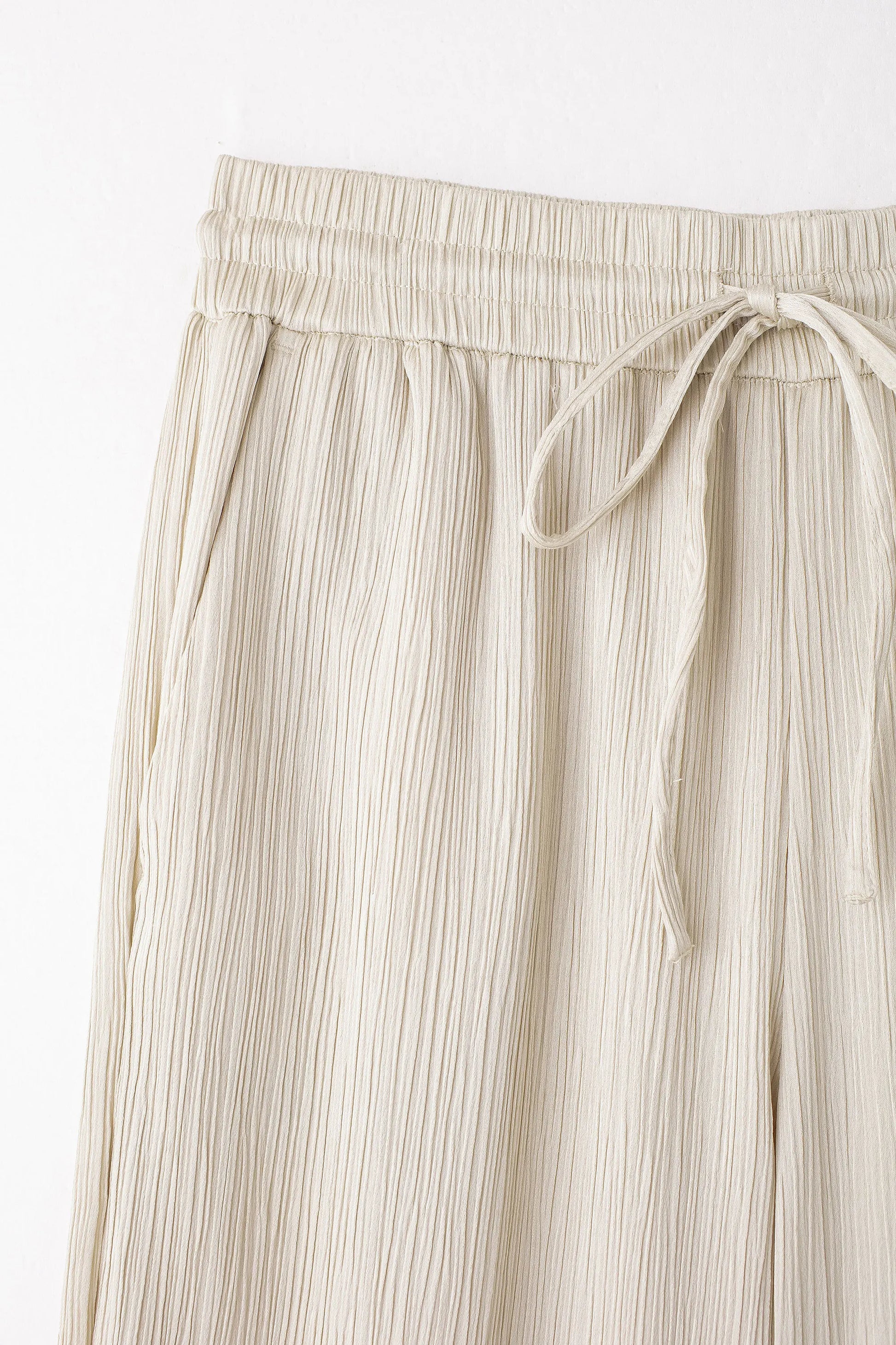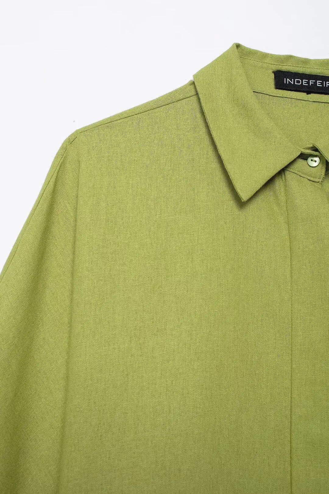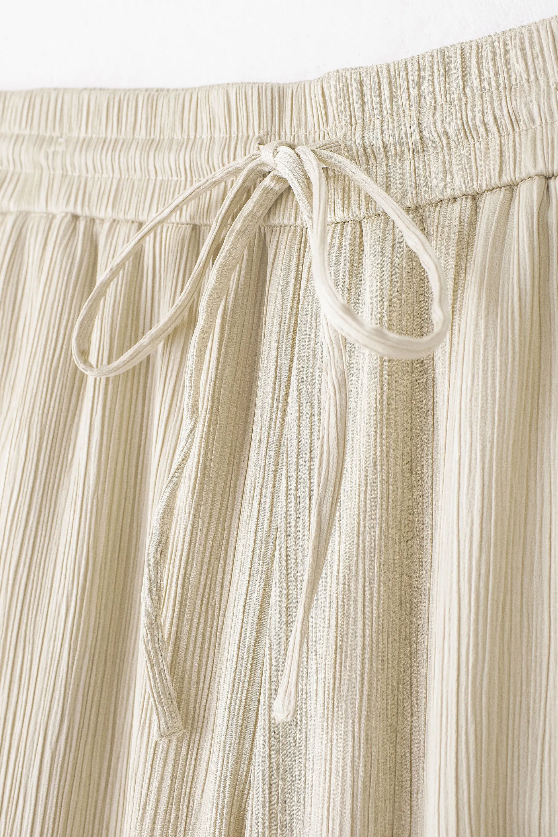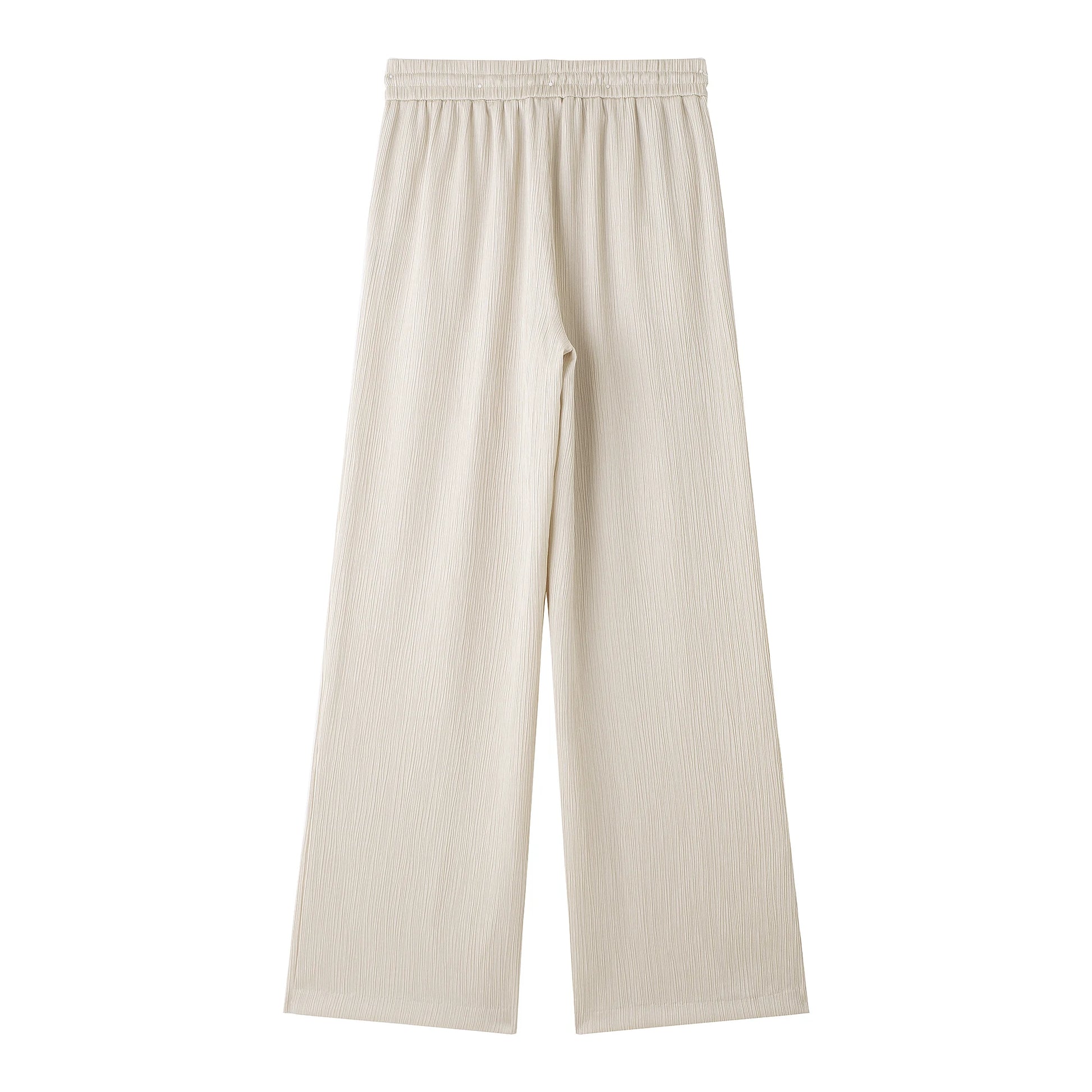Woman's 2 Piece Set™ TRAFZA Elastic Waist Pocket Folds Decorate Wide Leg Pants Solid Single-Breasted Slit Hem Blouse Top