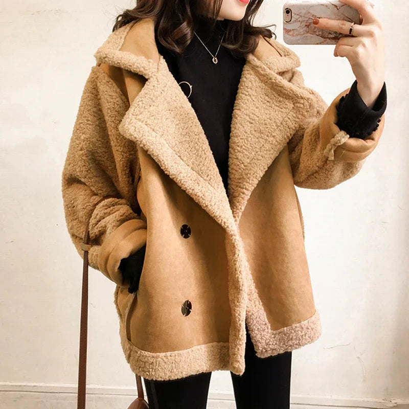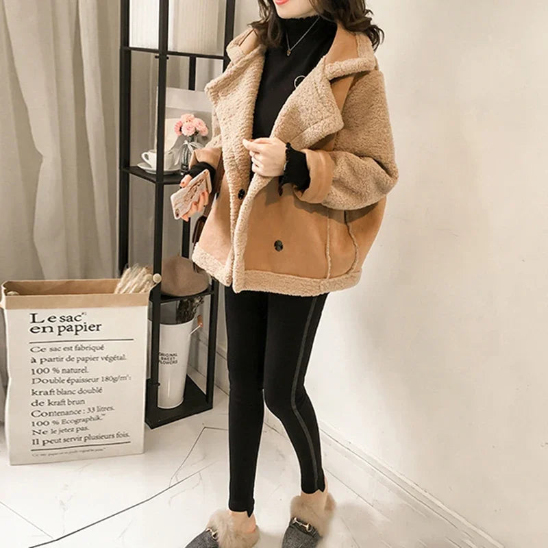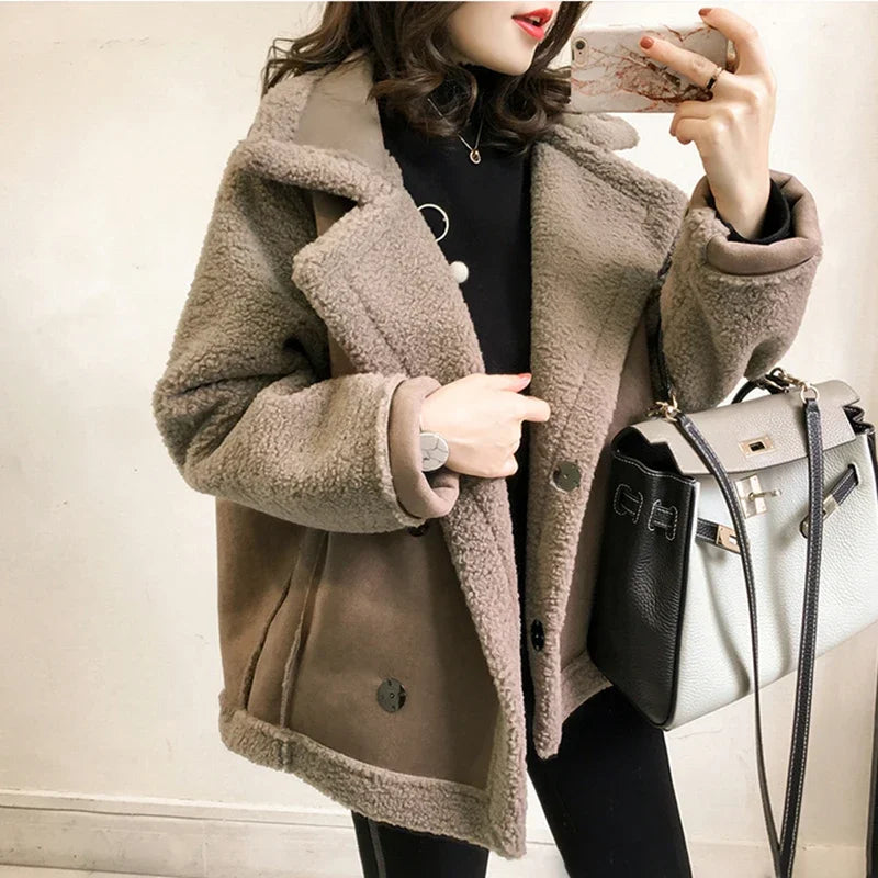 Woman's Lamb Wool Plush™ Shearling Long Sleeve Casual American Retro Short Jacket
