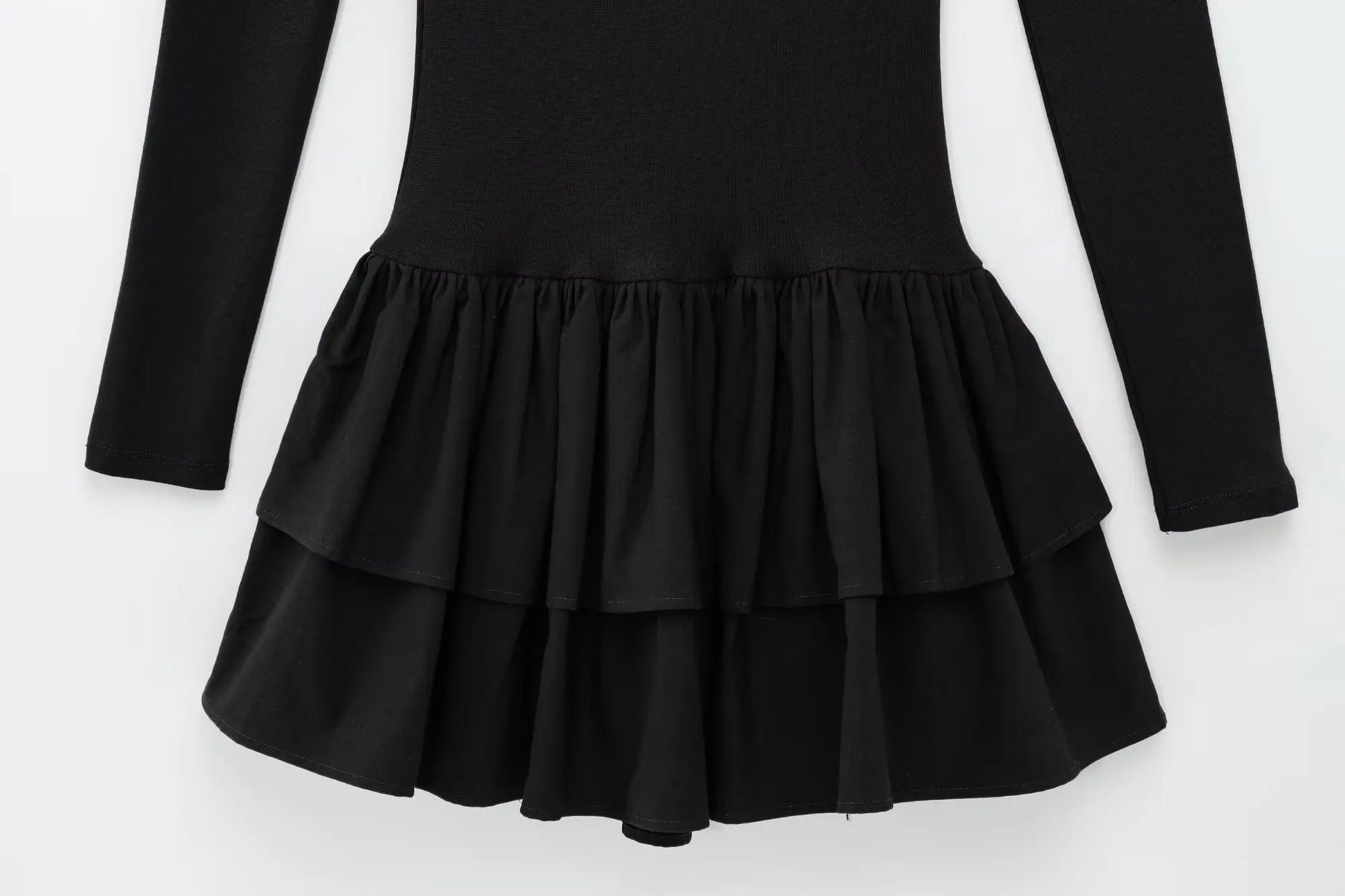 Women Dress™ TRAFZA Long Sleeve Dress Layered Hem Stretch Slim Brown Short Dress