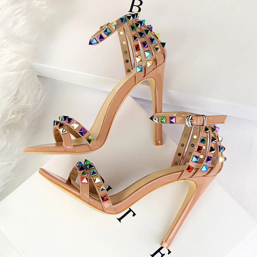 Women High Heels Rivets Studded Sandals™ Stiletto Gladiator Pumps Open Toe Luxury Sandals
