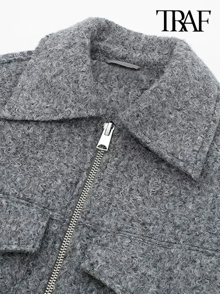 Women's Patch Pockets Jacket™ Vintage Long Sleeve Front Zipper Jacket