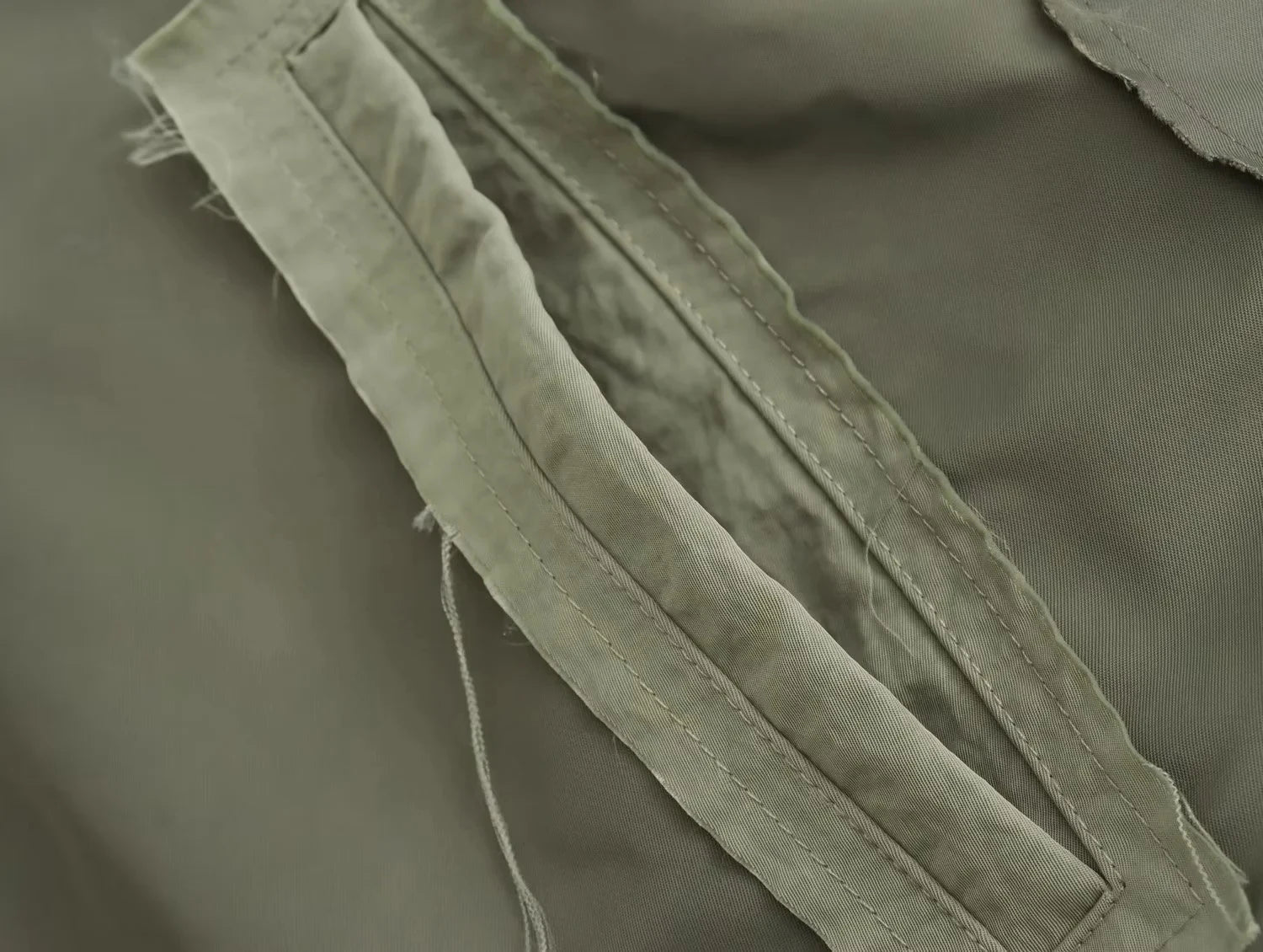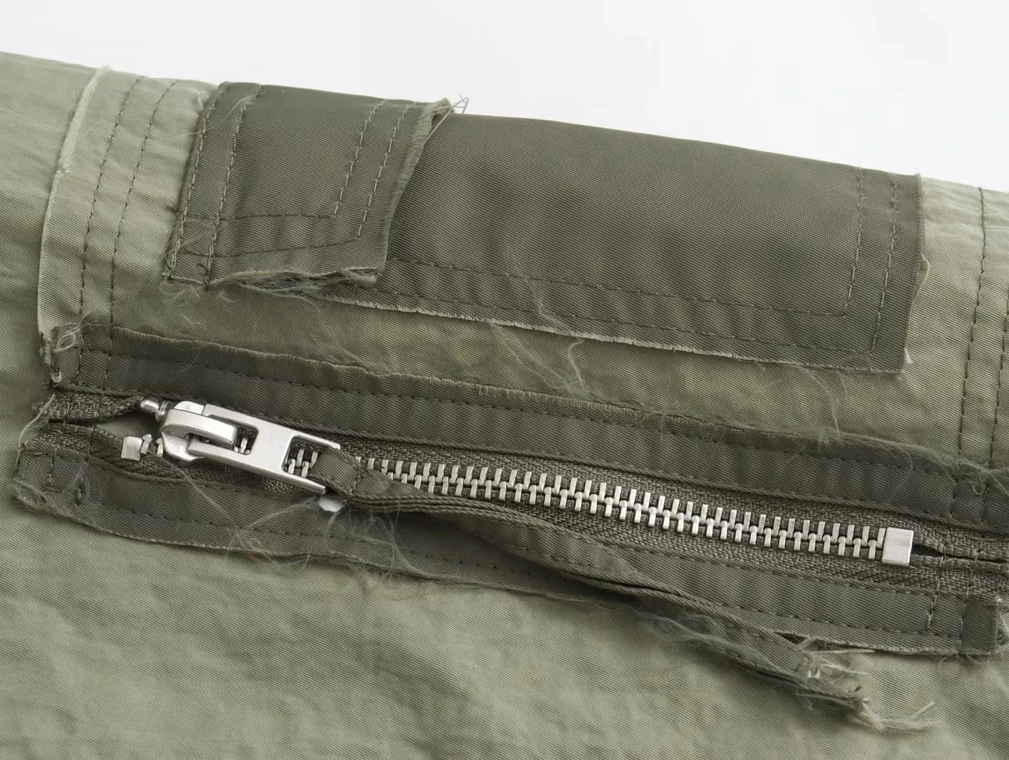 Women's Army green Bomber™ Jackets KONDALA Patchwork Zipper Pockets Oversized Coats