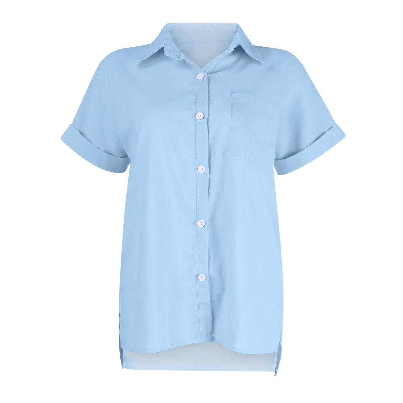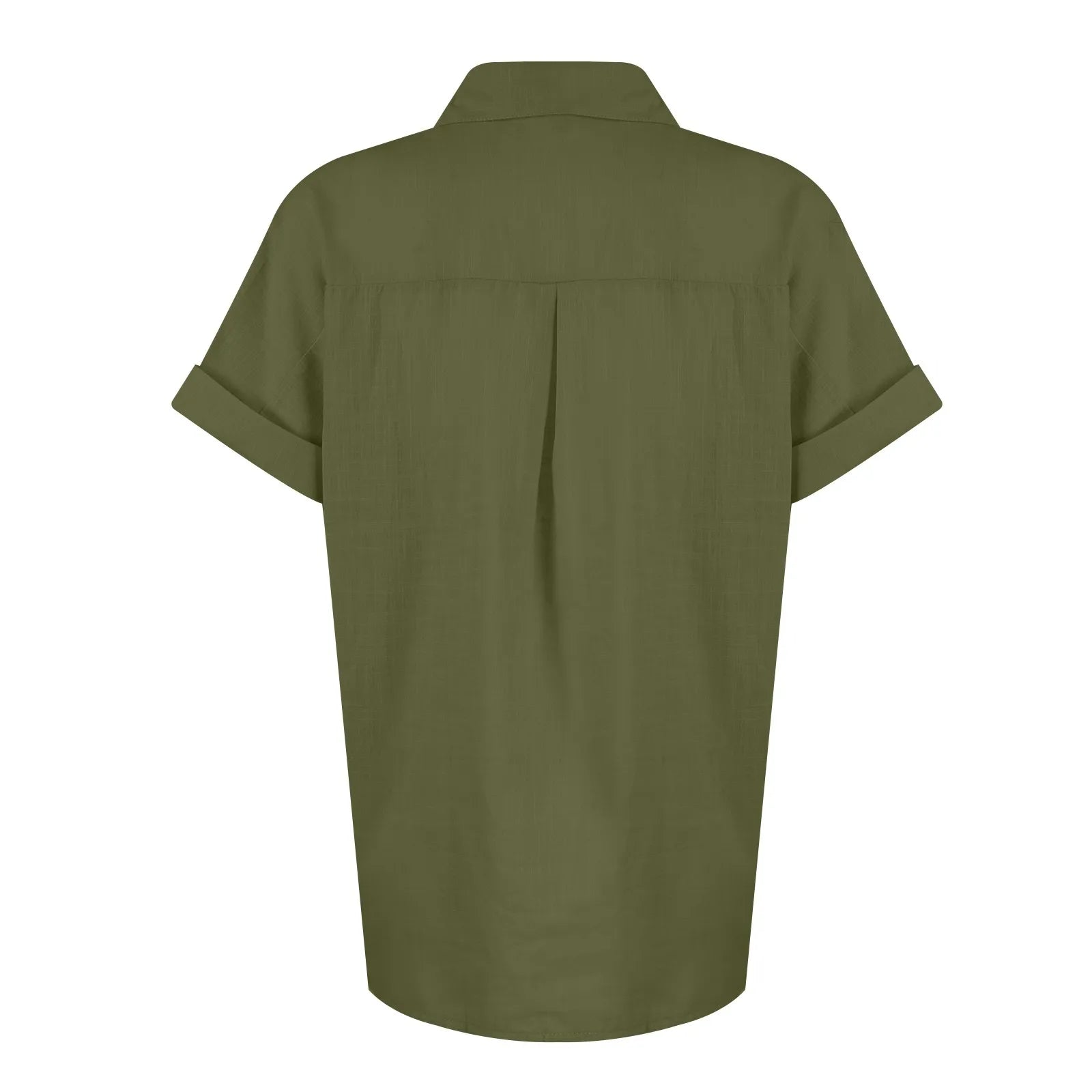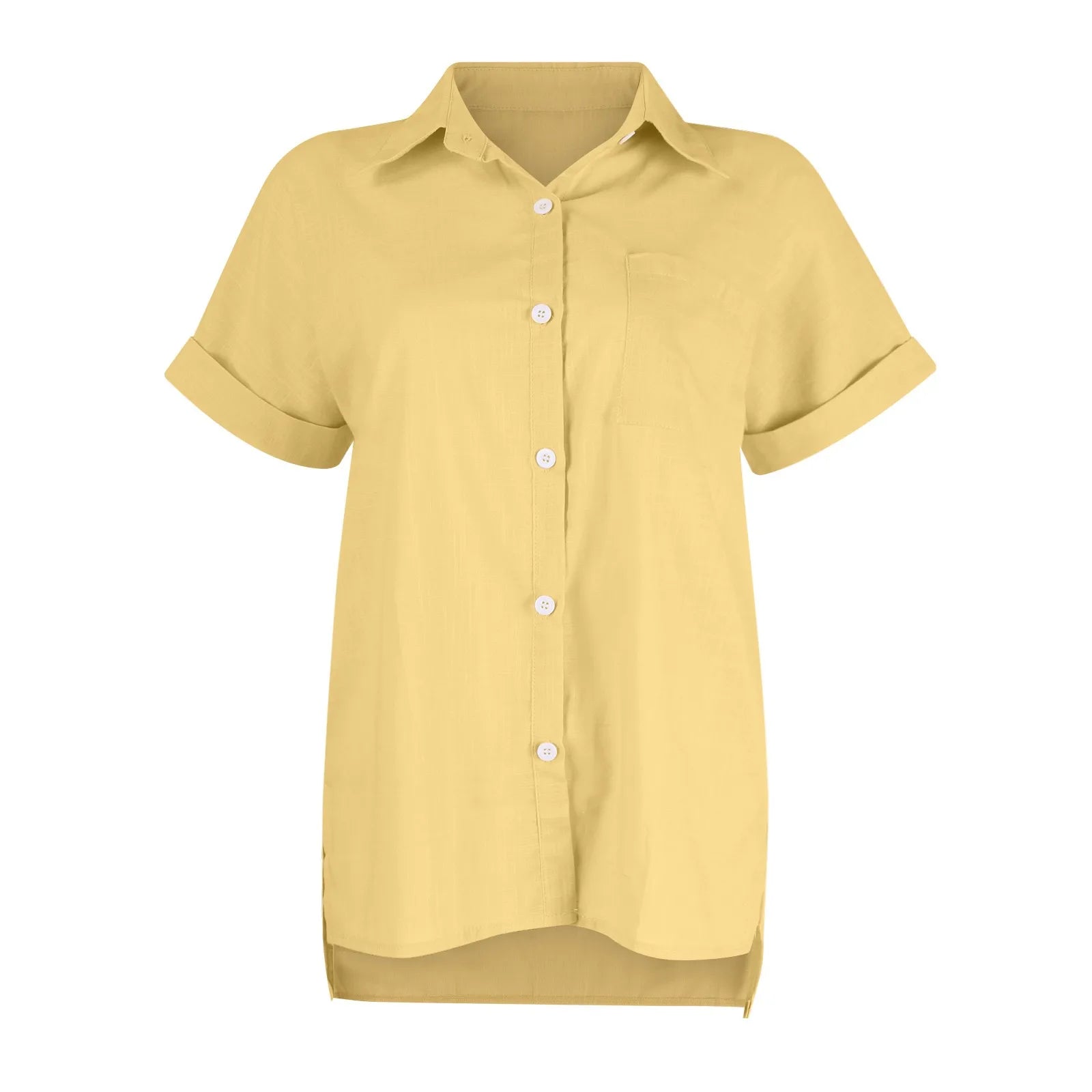 Women's Cotton Linen Classic Shirts™ Short Sleeve Lapel Button Down Shirt