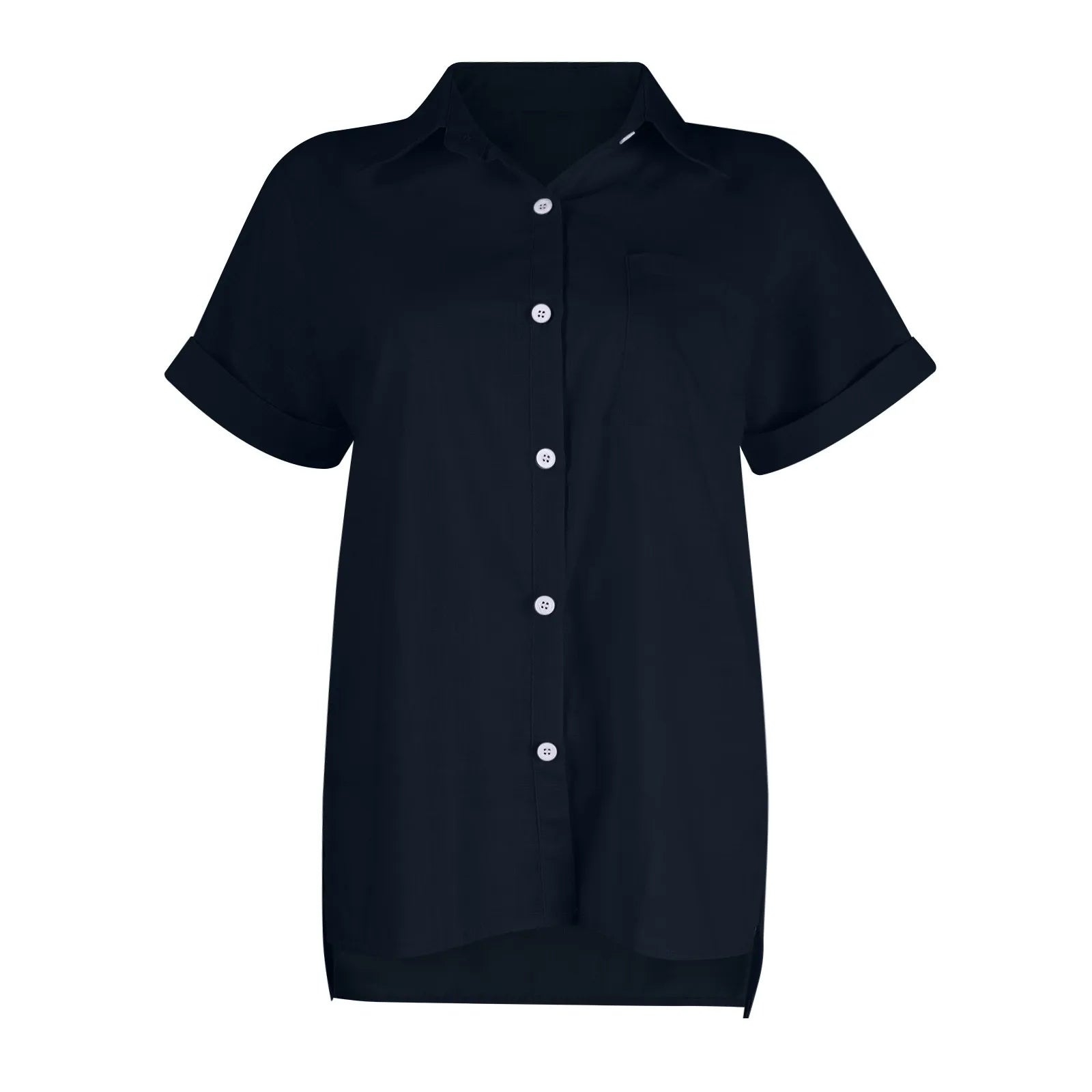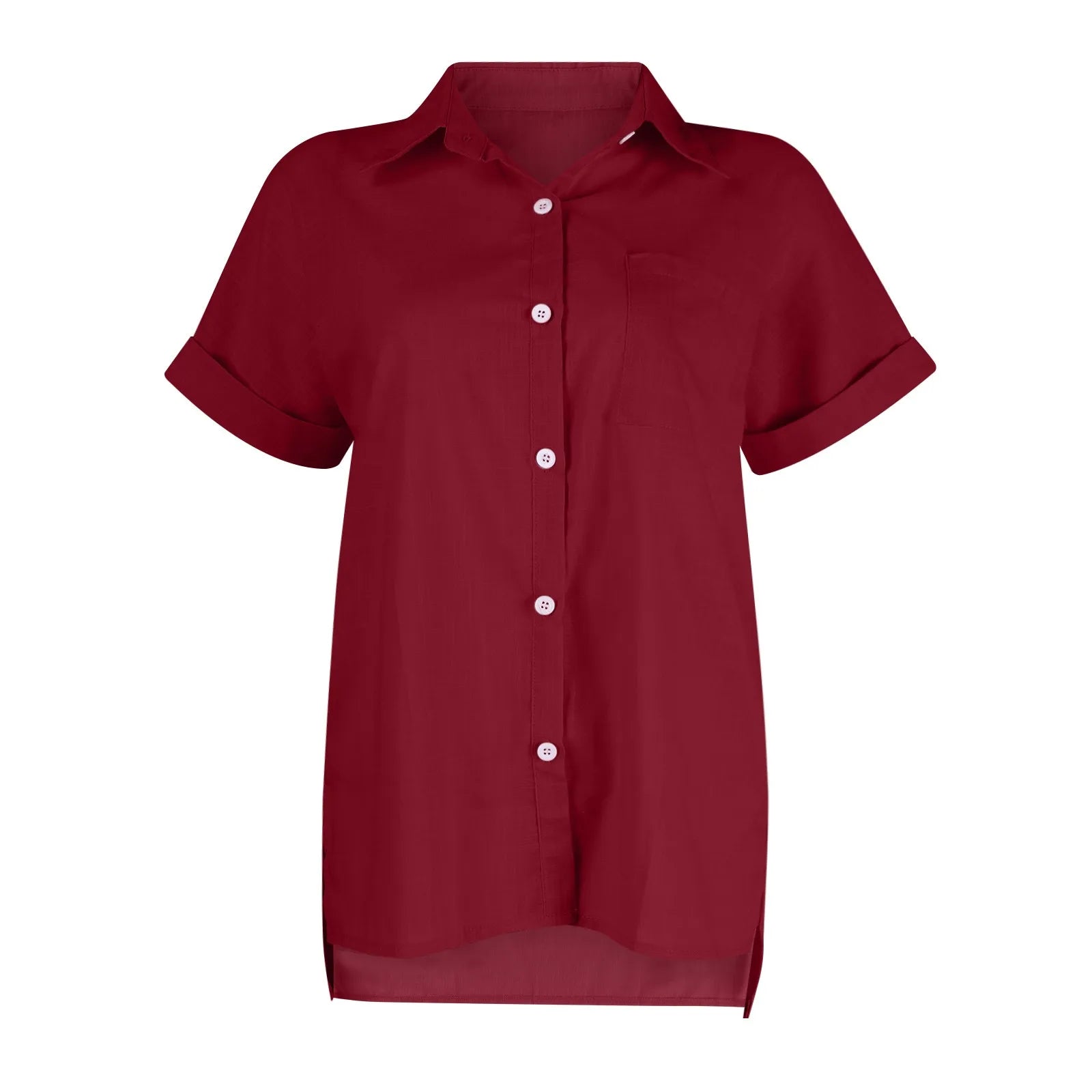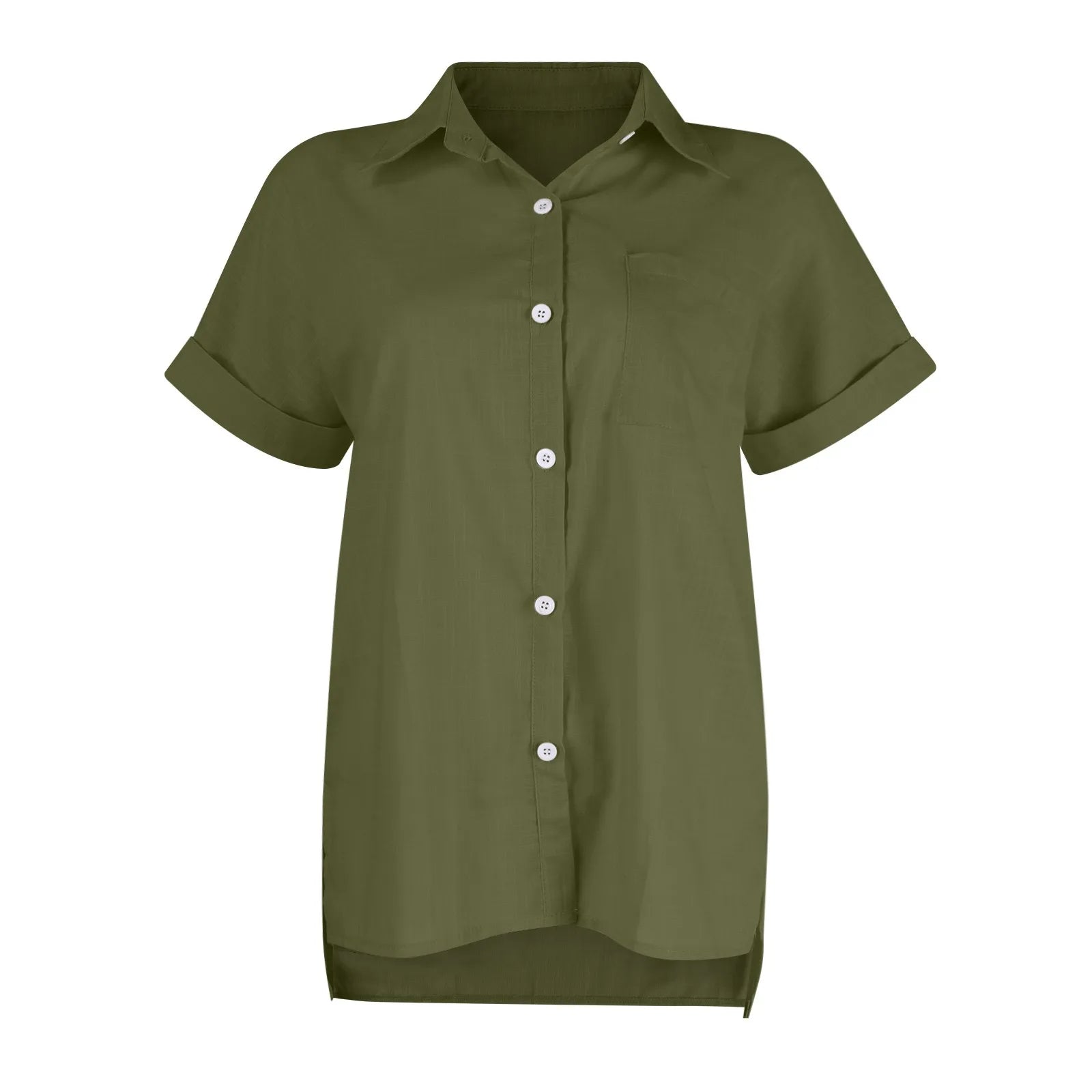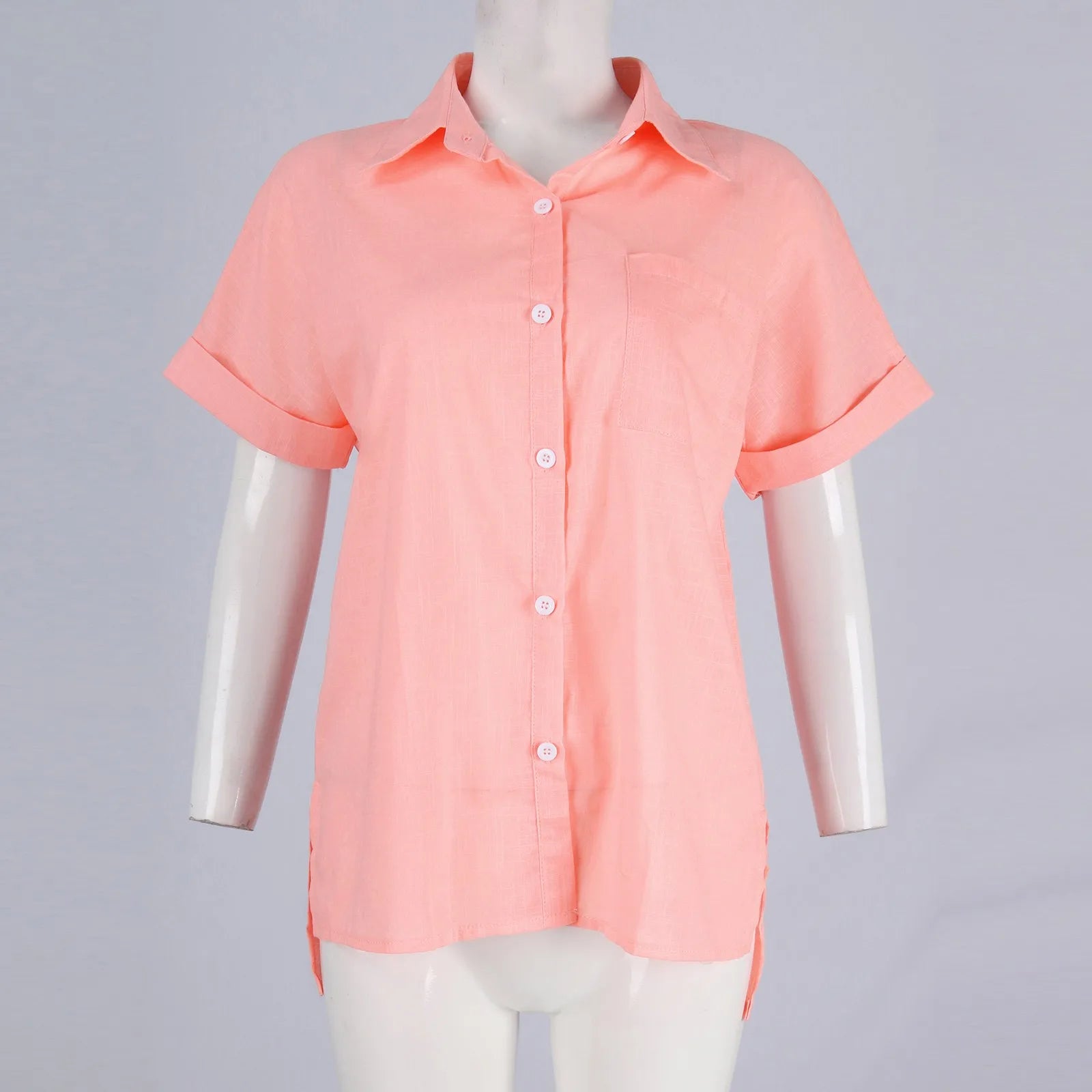 Women's Cotton Linen Classic Shirts™ Short Sleeve Lapel Button Down Shirt