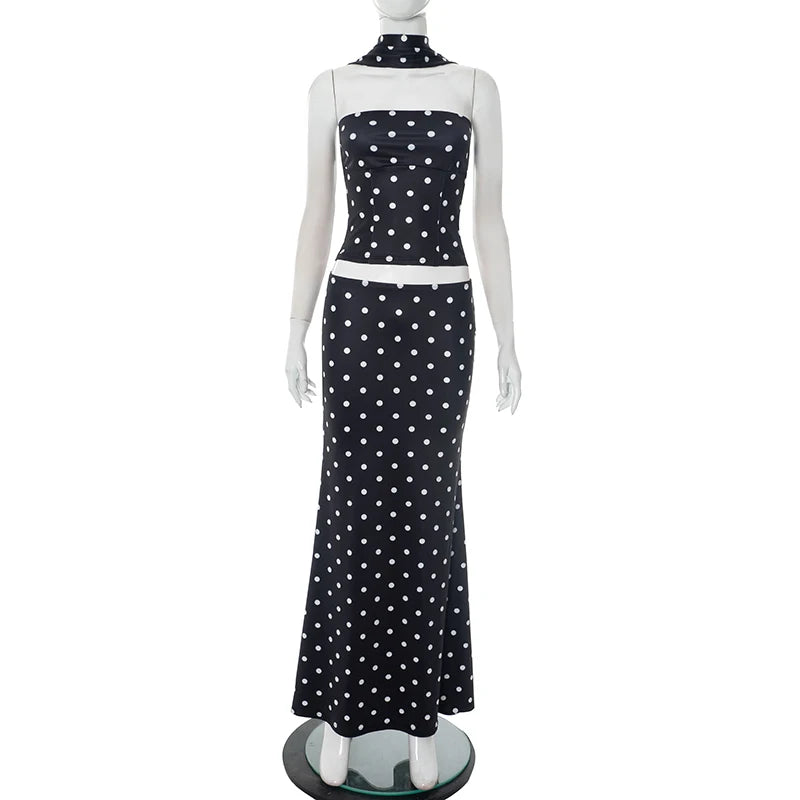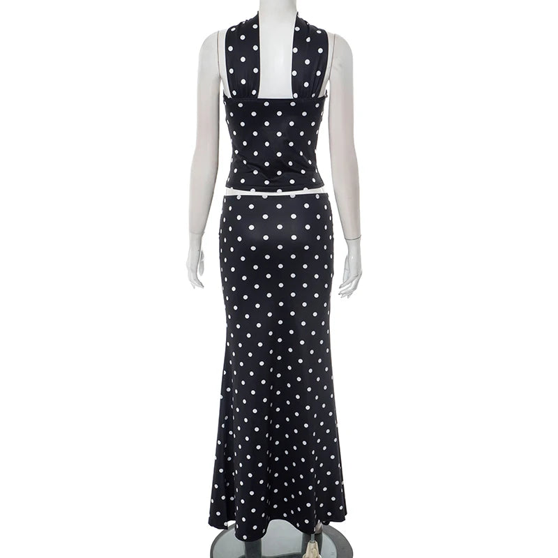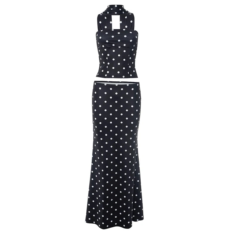 Women's CUTENOVA Polka Dot Set™ Hanging Neck Plunge Tank Top + Slim Long Skirt