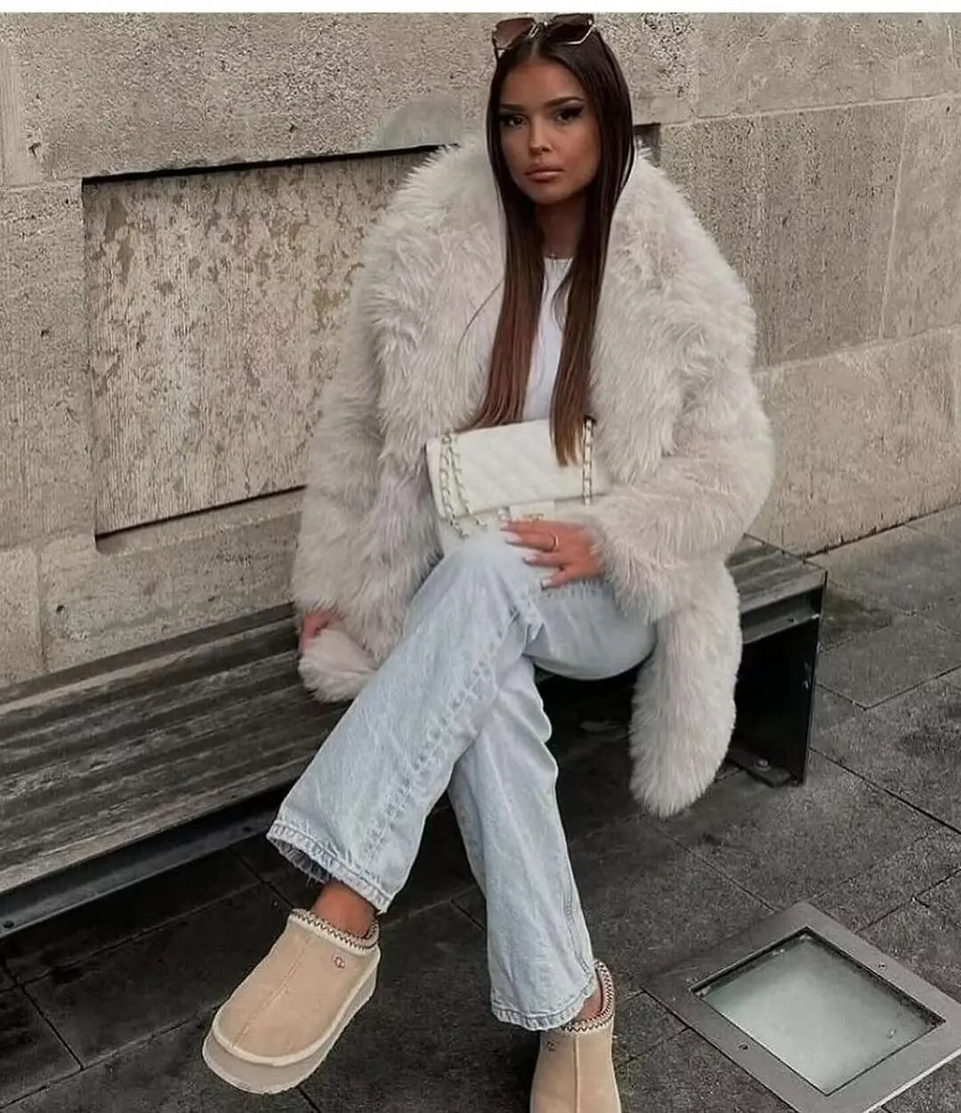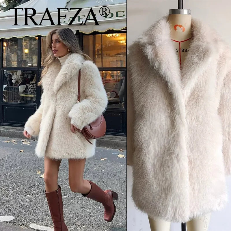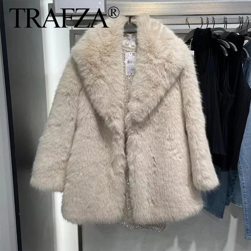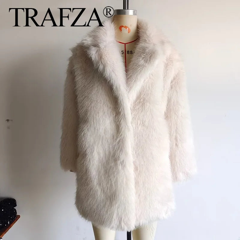 Women's Faux Fur Coat™ TRAFZA Female Chic Chill Long Sleeve Casual Warm Thicken Coat