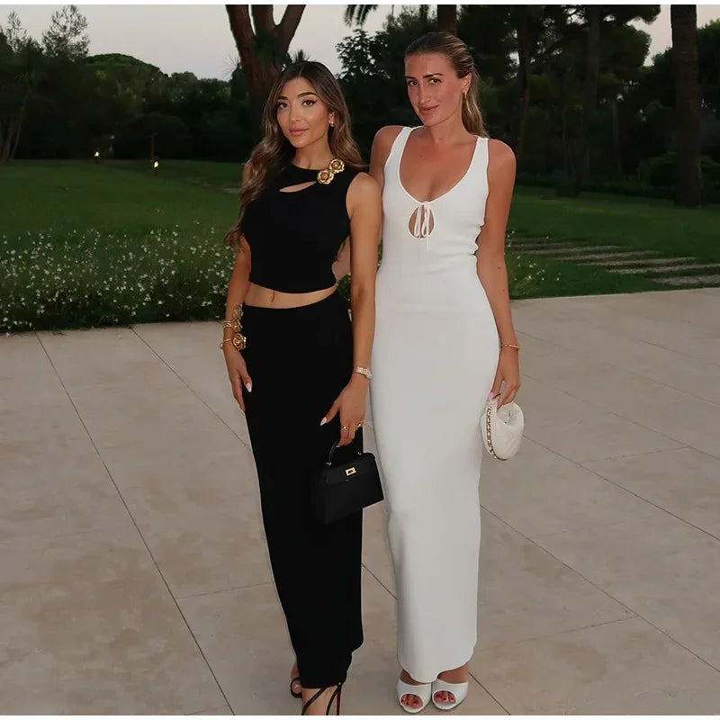 Women's Flower Hollow Out Suit™ Women Top Slim Sleeveless Tank High Waist Hip Package Skirt Suit