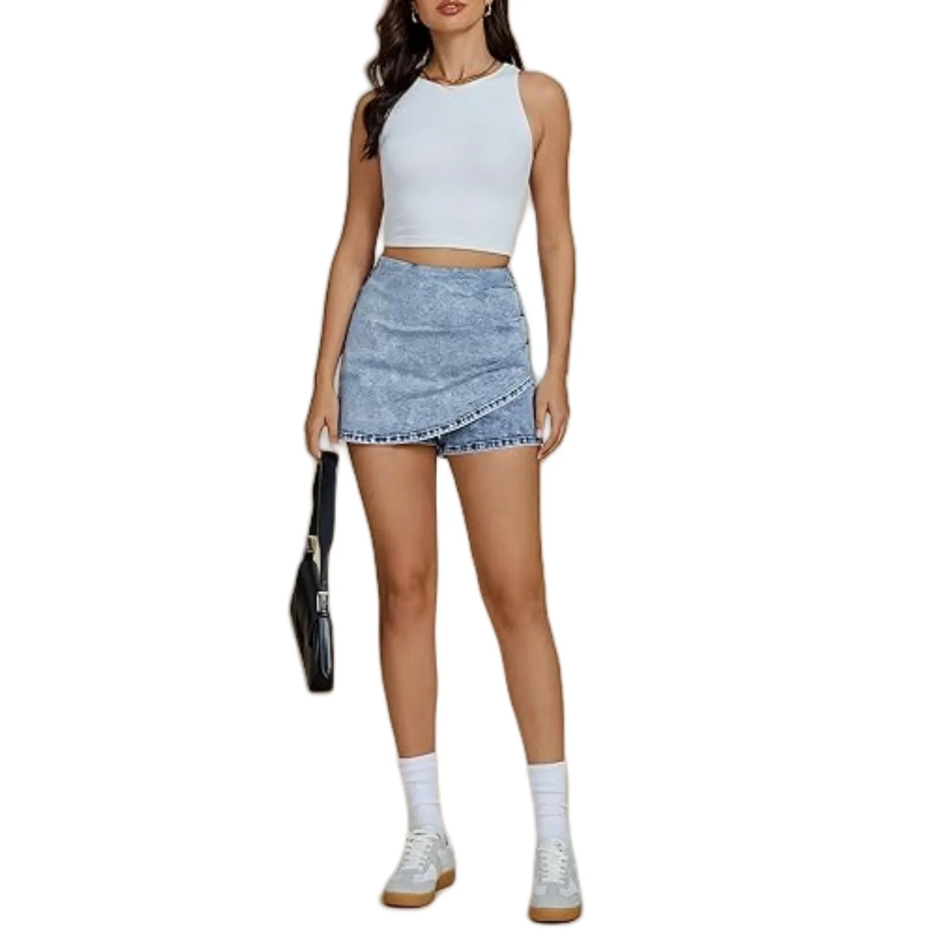 Women's High Waist Denim Shorts™ Elastic Asymmetric Wrap Pants Cross-Border Shorts