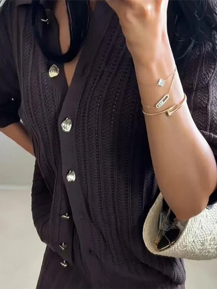Women's Knitted Pants & Tops Set™ Turn Down Collar Half Sleeve Tops & Elastic Waist Straight Trousers Outfits
