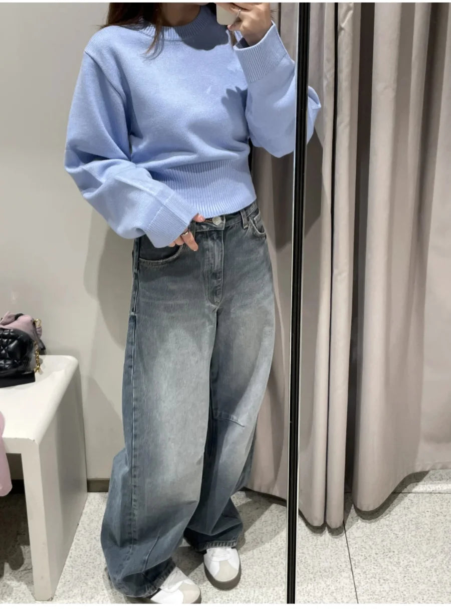 Women's Knitted Traf Sweater™ Loose Long Sleeve Round Neck Ribbed Hem Short Cardigan
