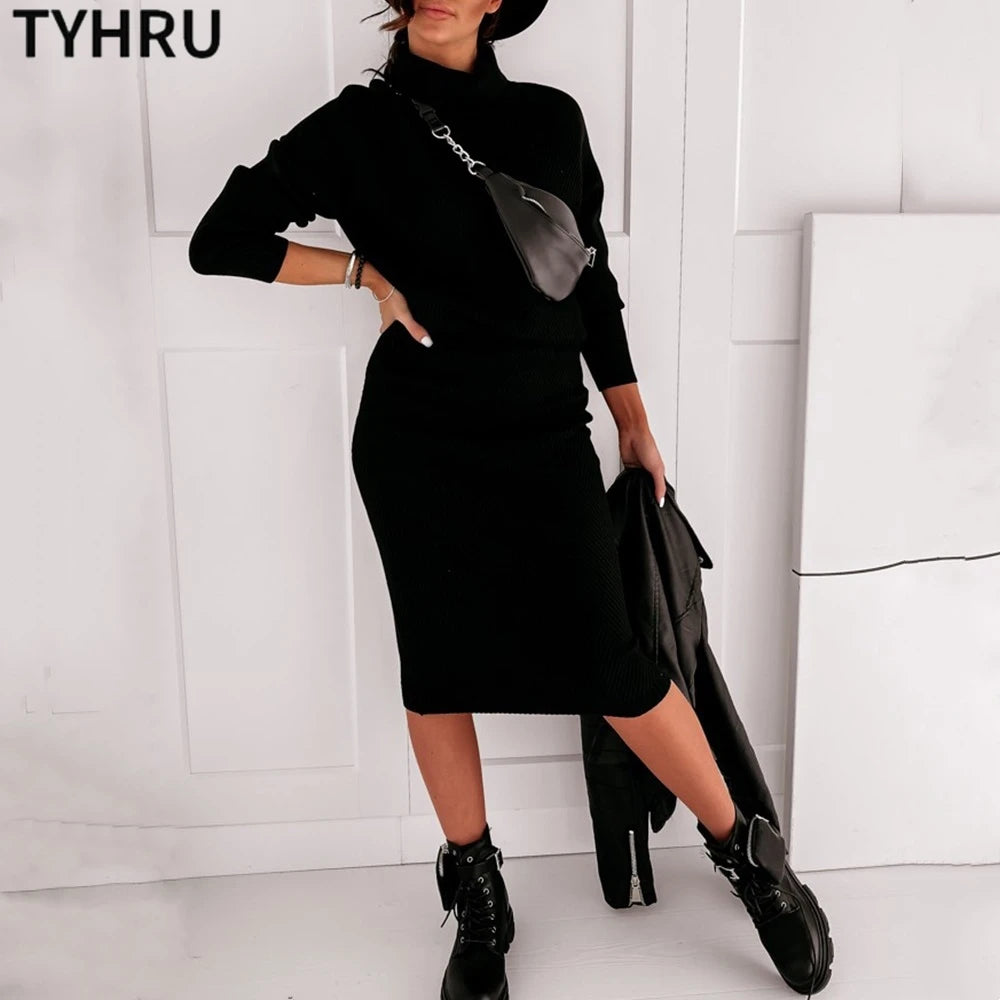 Women's Knitting Costume™ TYHUR Autumn Turtleneck Pullover Sweater and Slim Skirt Set