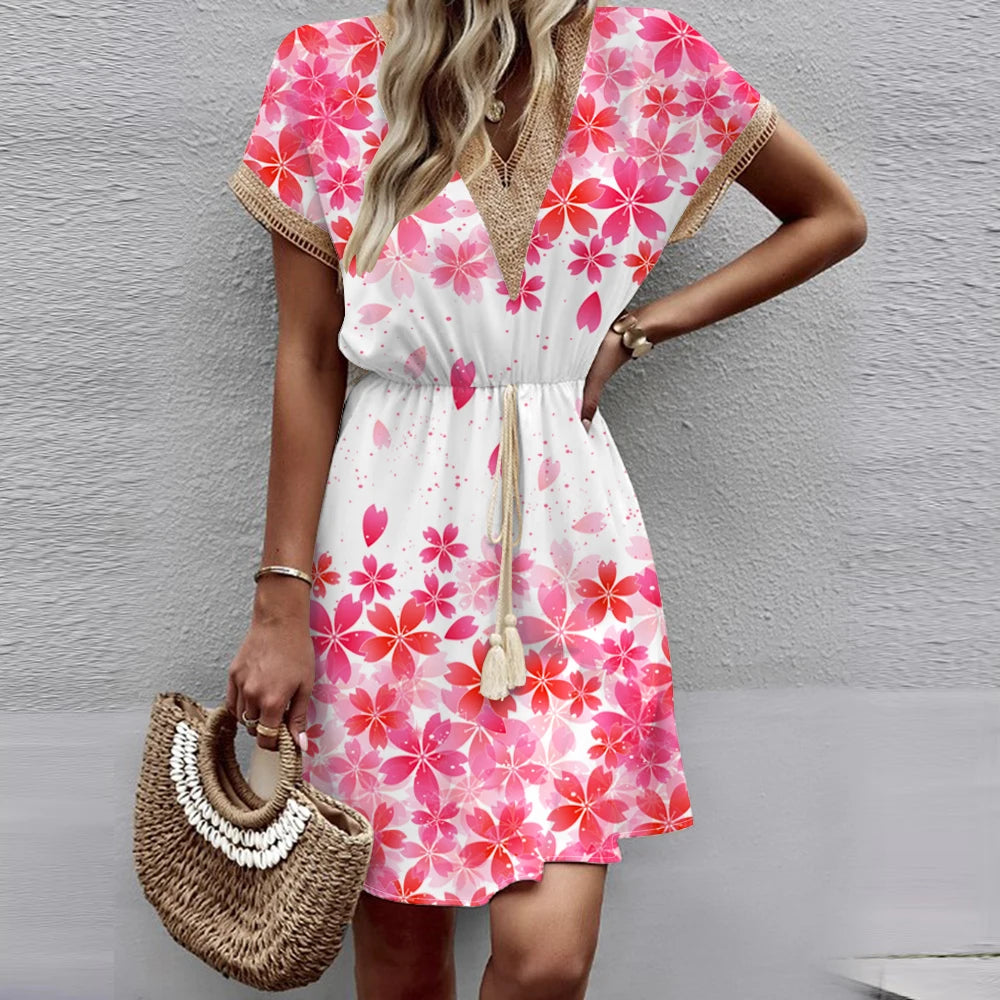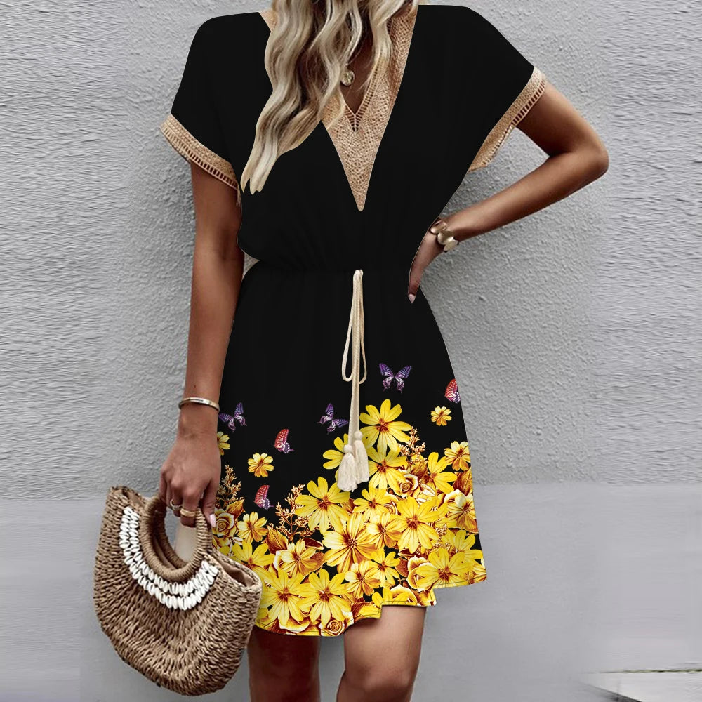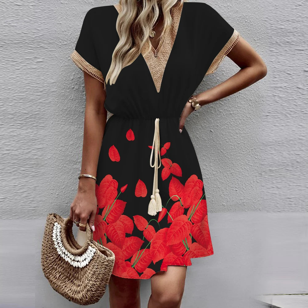 Women's Medium Length Dress™ Bat Sleeves V-Neck Waist Wrap Lace Dress