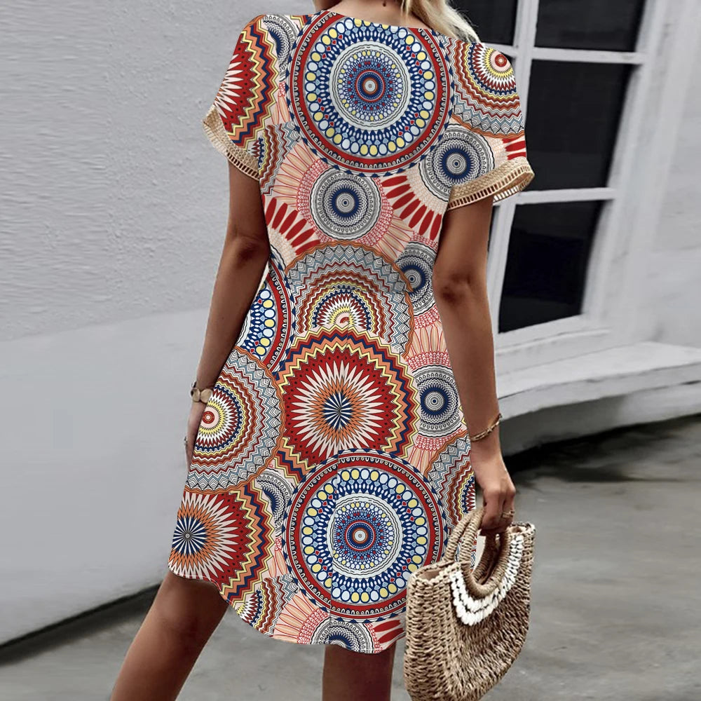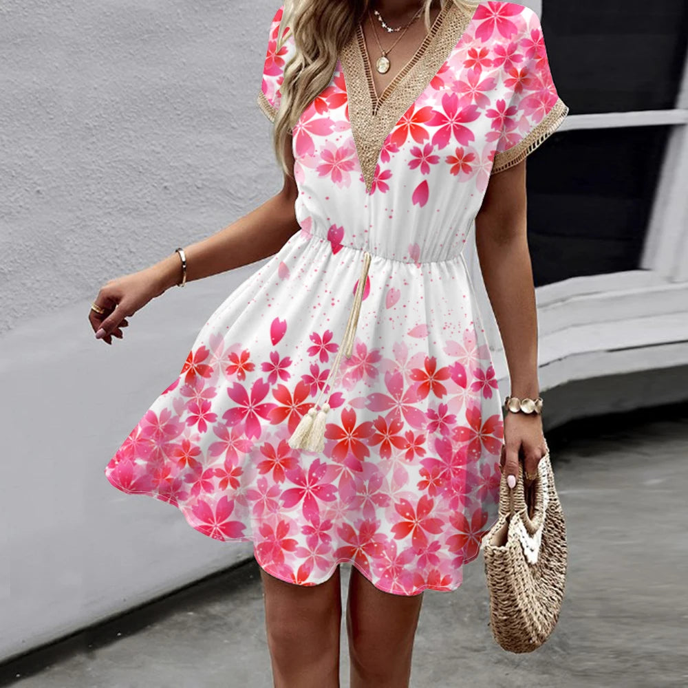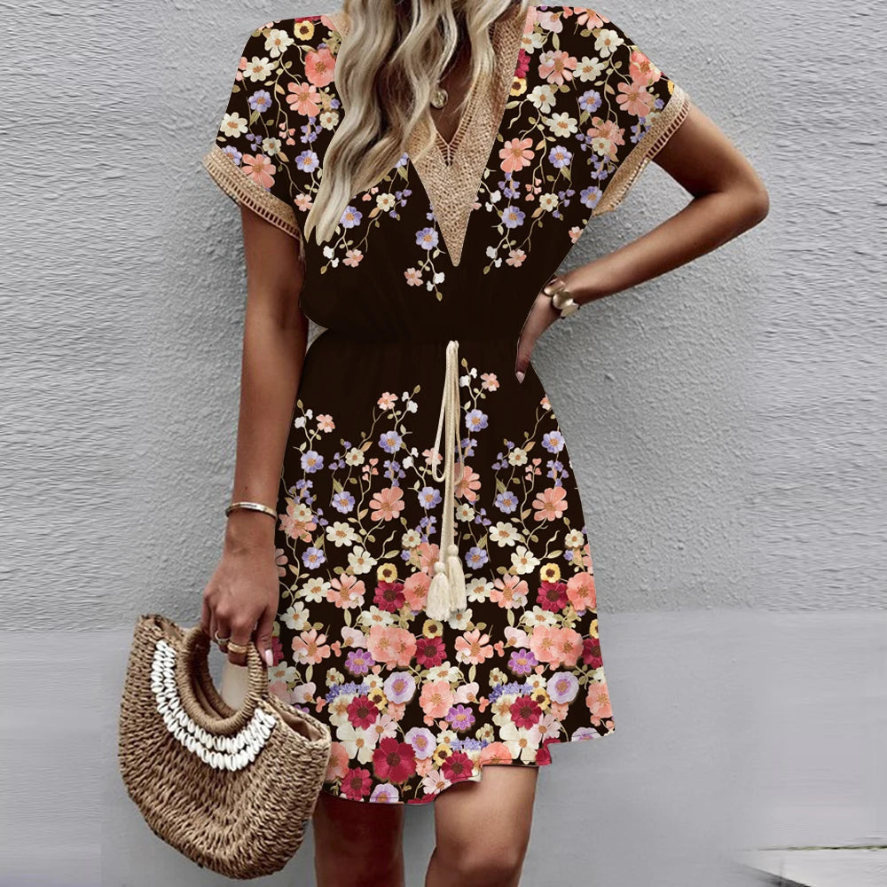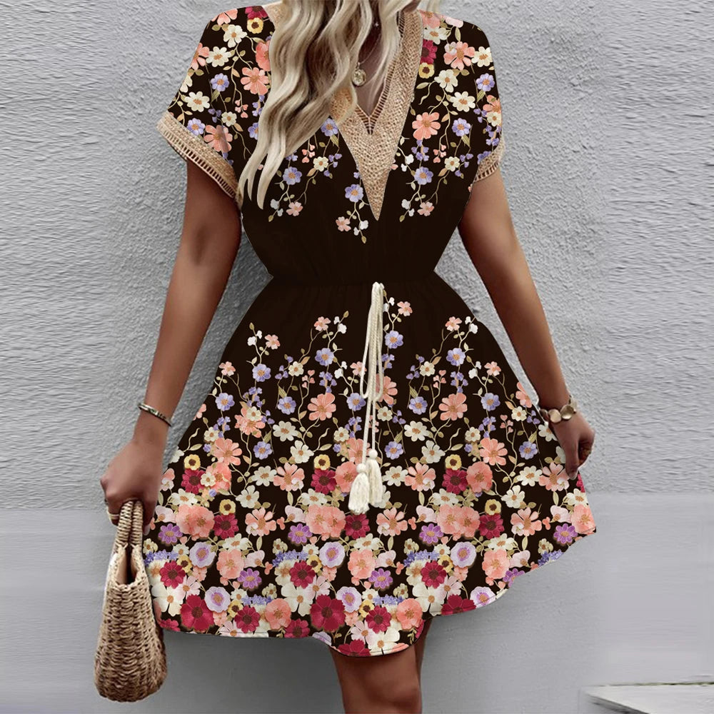 Women's Medium Length Dress™ Bat Sleeves V-Neck Waist Wrap Lace Dress