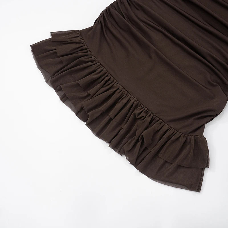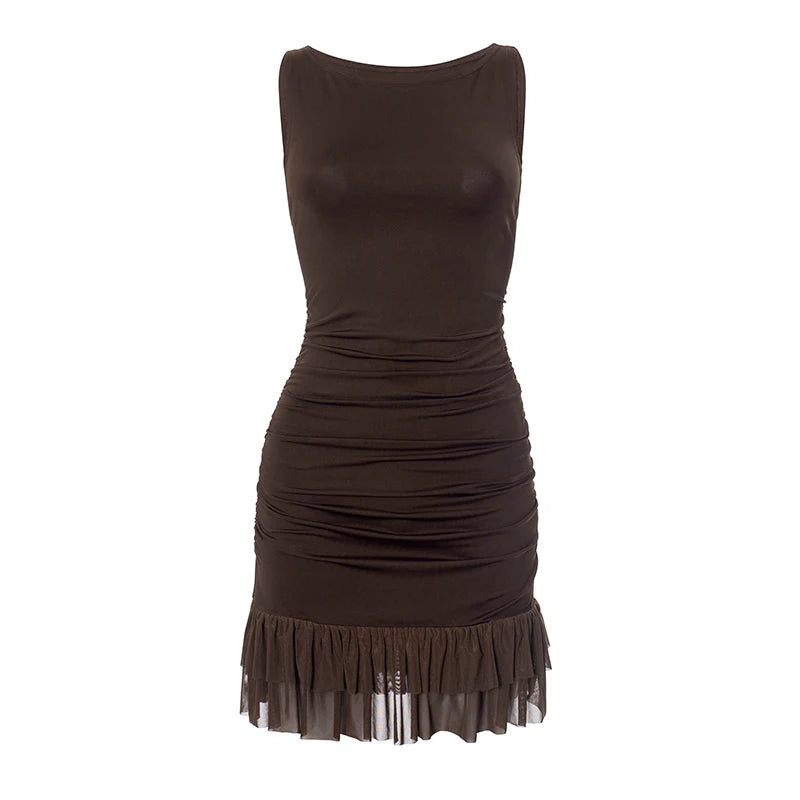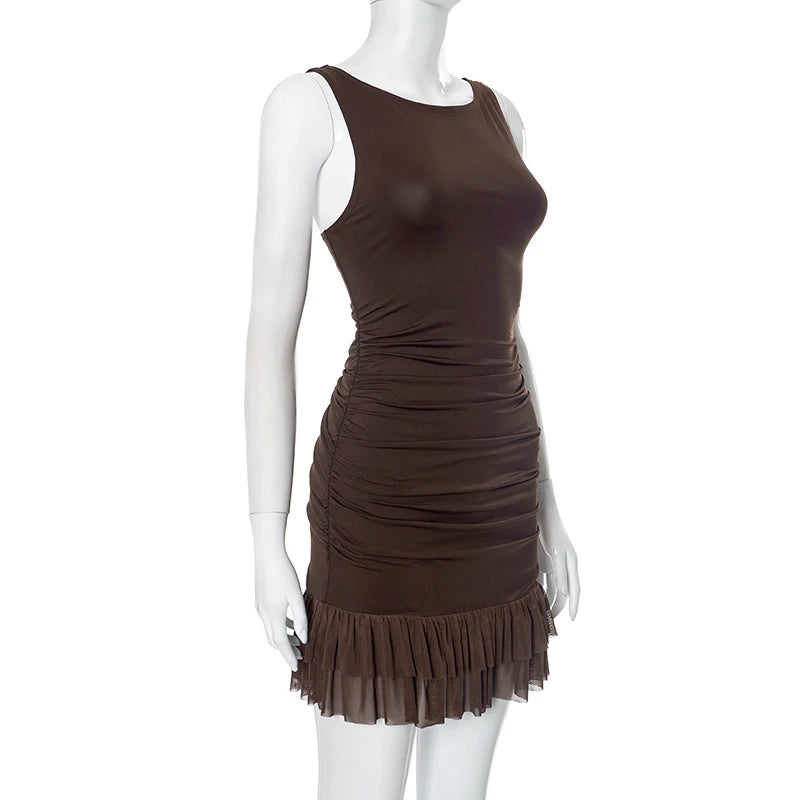 Women's Mini Dress™ Sleeveless Pullover Shrink Pleated Ruffle Hem Mesh Lace Short Dress