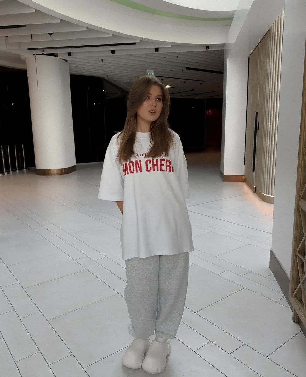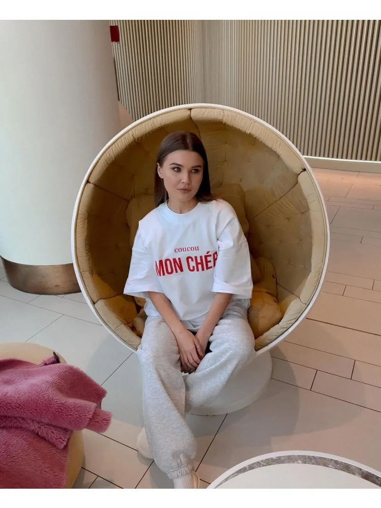 Women's Mon Cheri Letter Printed T Shirt™ Cotton Short Sleeve Oversized Tops