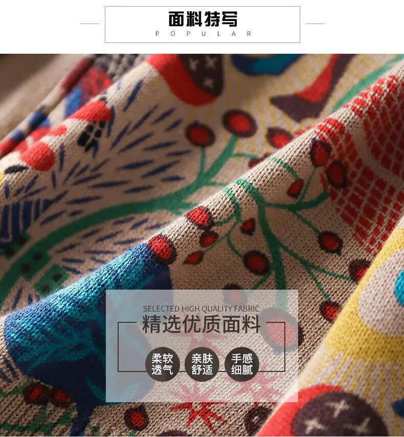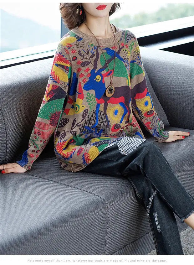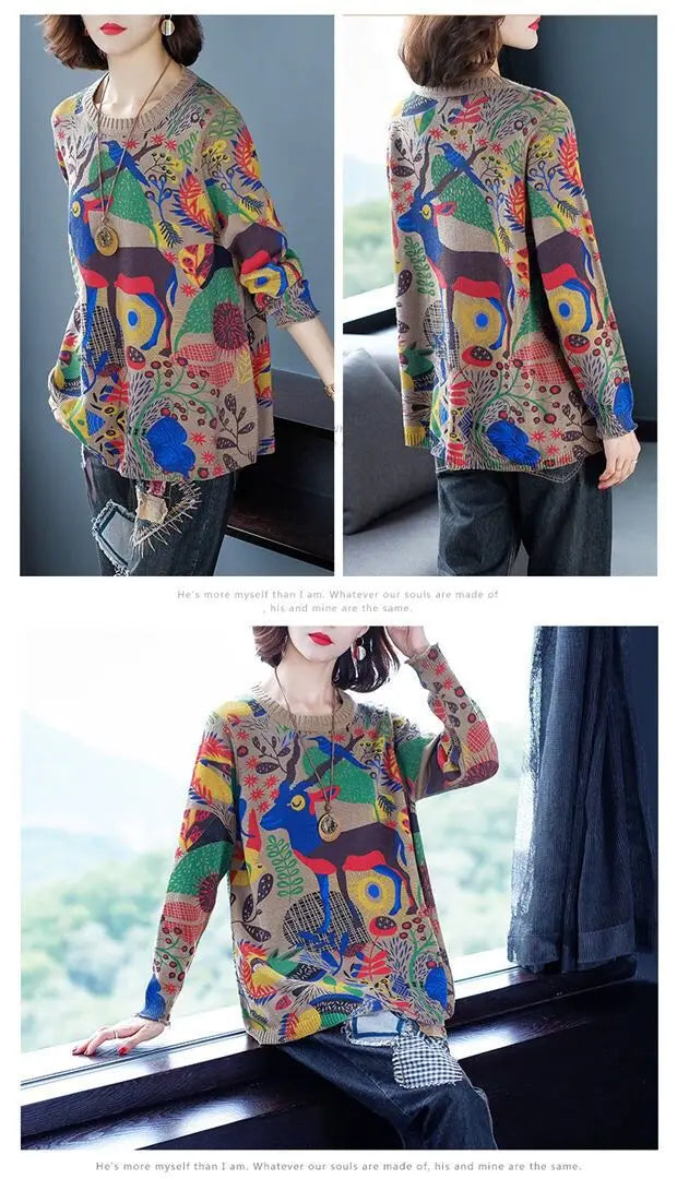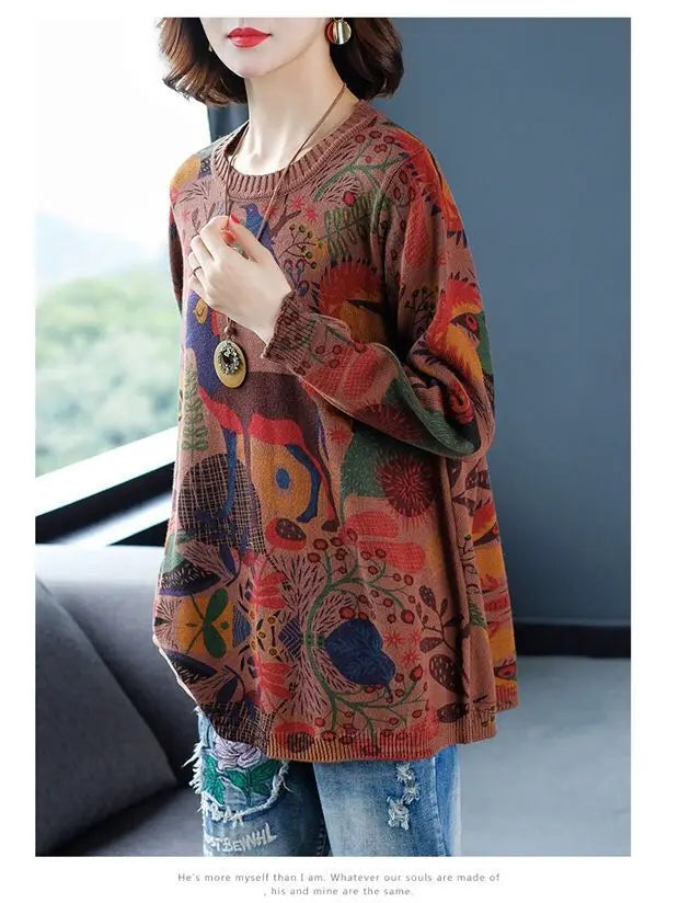 Women's O-Neck Abstract Printed Jumpers™ Loose Patchwork Vintage Long Sleeve Knitted Sweaters