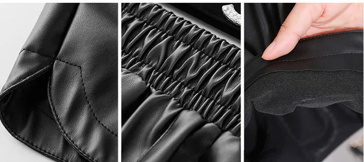 Women's Shorts™ Black PU Leather High Waist Wide Leg Faux Leather Shorts