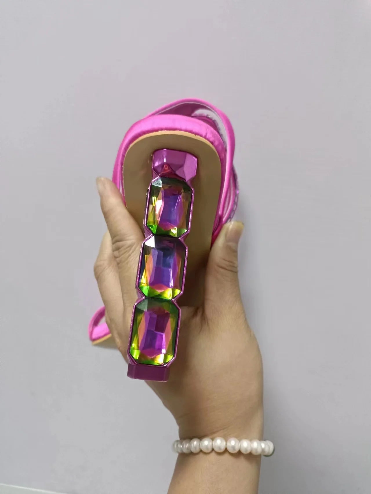 Women's Sparkly Stacked Crystal Heel Sandals™ Thin Embellished Ankle Straps High Heels