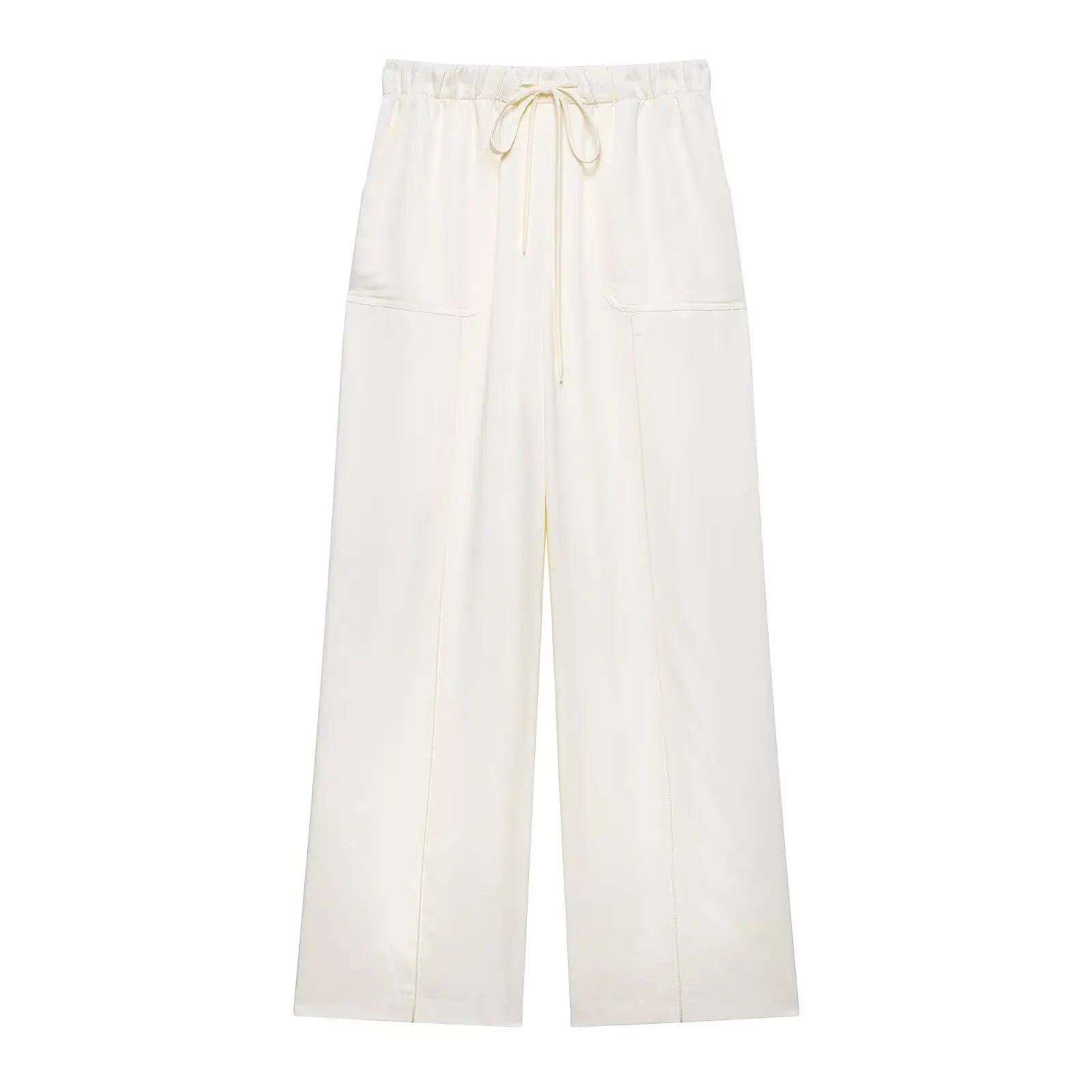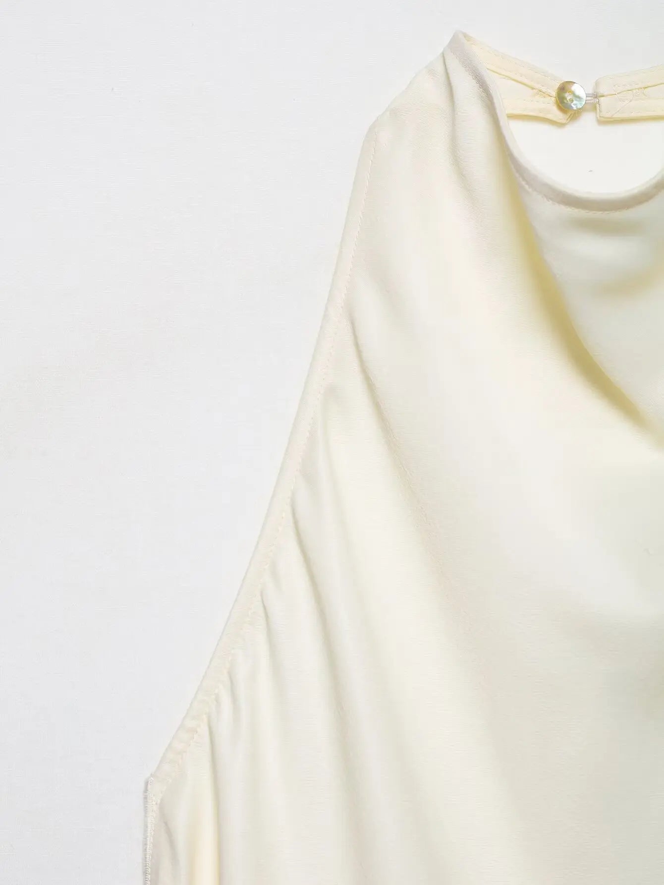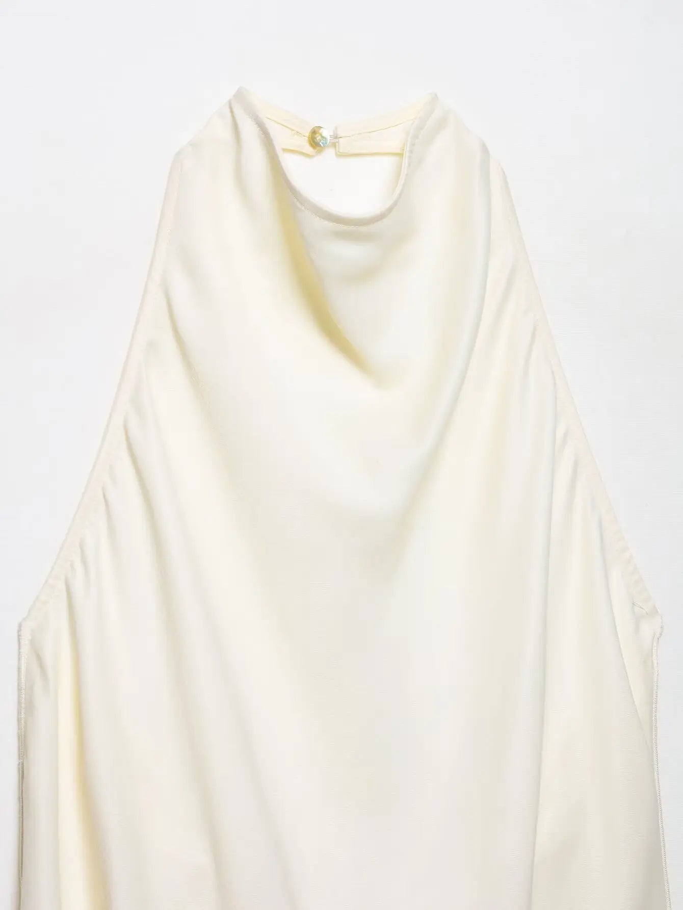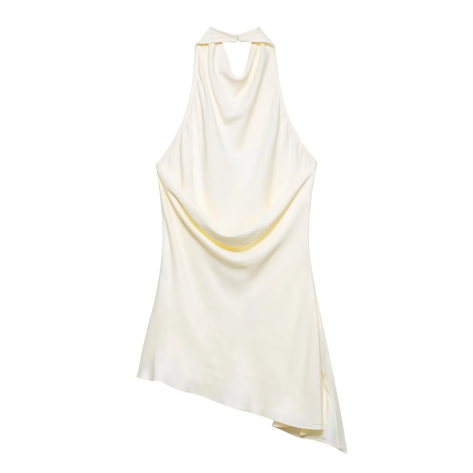 Women's Suit Set™ EDSA Asymmetric Hem Open Back Halter Neck Blouse Mid-rise Straight Long Trousers Suits