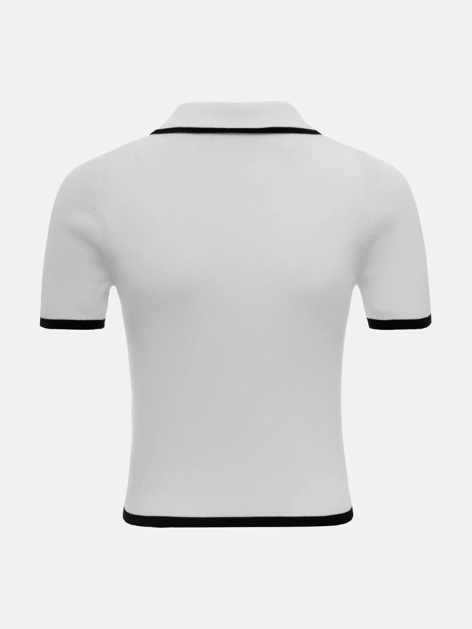 Women's Summer Knit Tops™ Short Sleeve Patchwork Slim Lapel Ribbed Tees