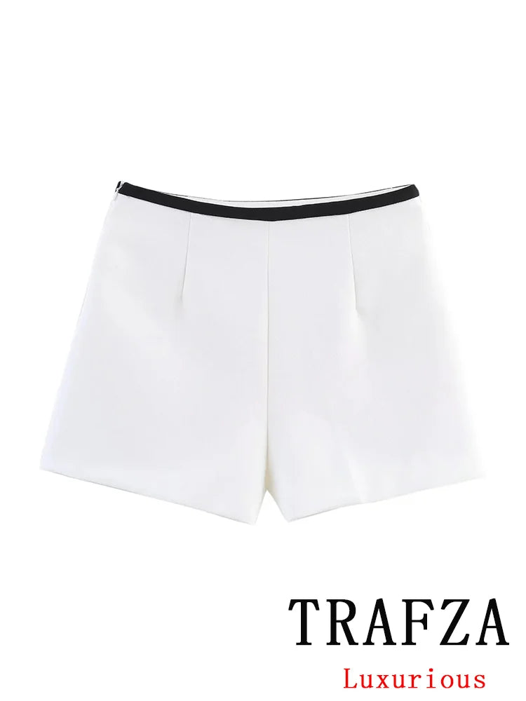 Women's Summer Suit™ TRAFZA Causal Chic Patchwork V Neck Double Breasted Vest Blazer Straight Shorts Spring Summer Sets
