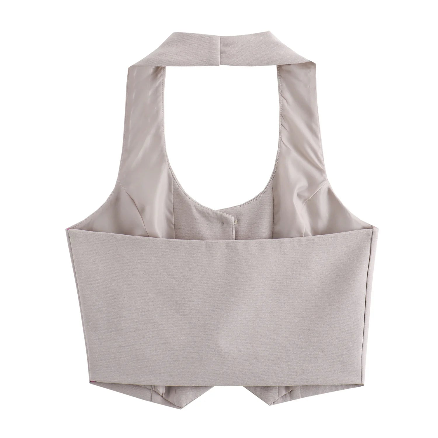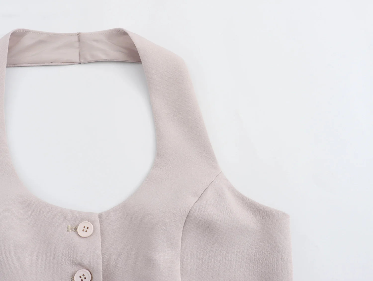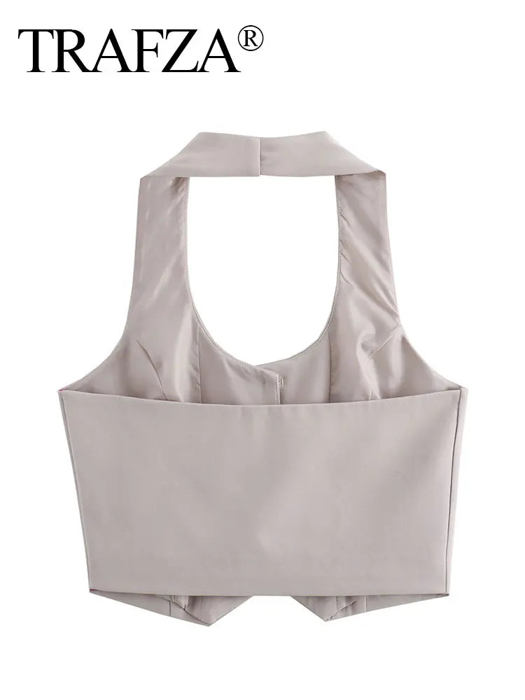 Women's TRAFZA Suit™ Single Breasted Halter Cropped Top and High Waist Patchwork Trouser Sets