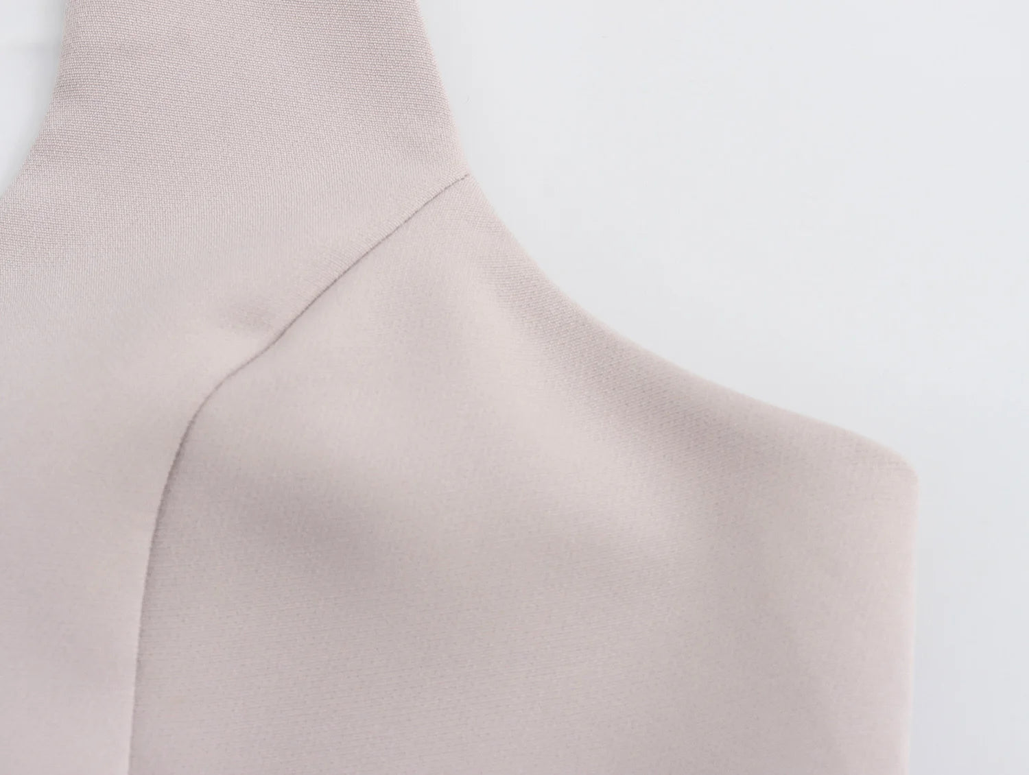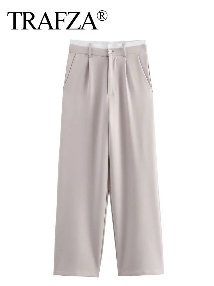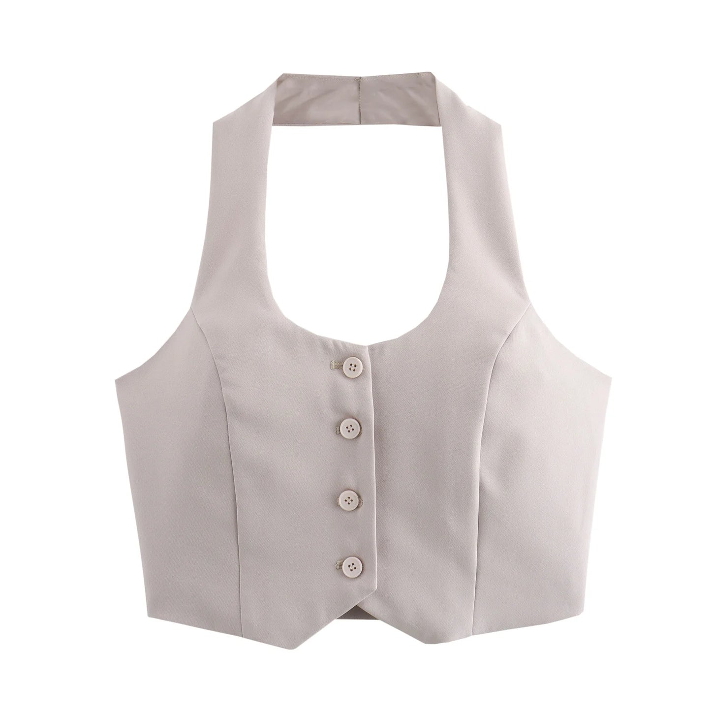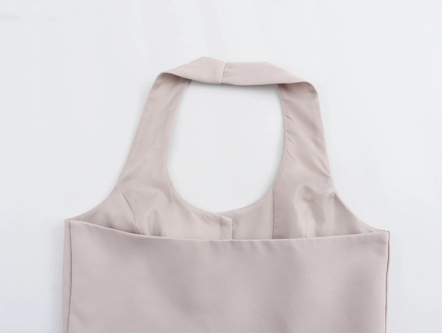 Women's TRAFZA Suit™ Single Breasted Halter Cropped Top and High Waist Patchwork Trouser Sets