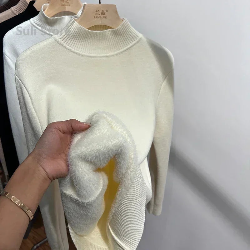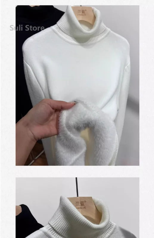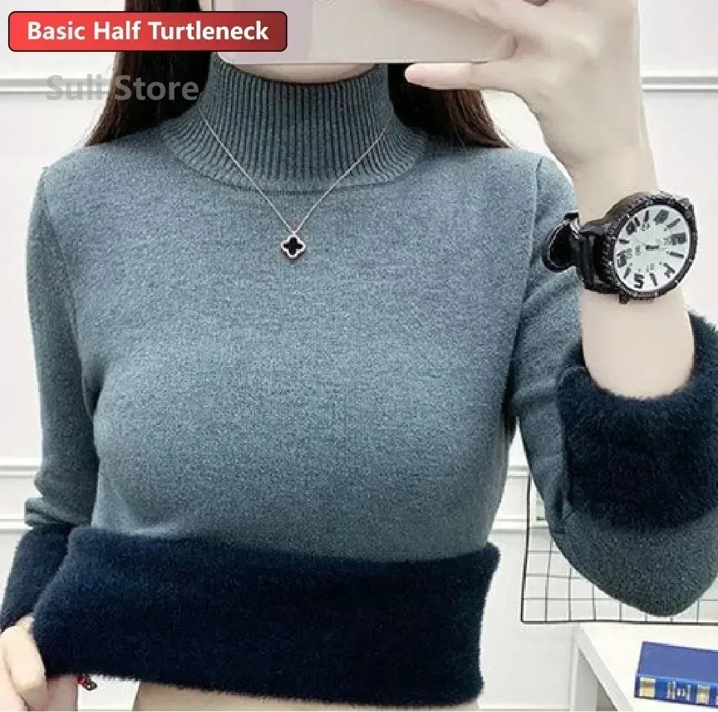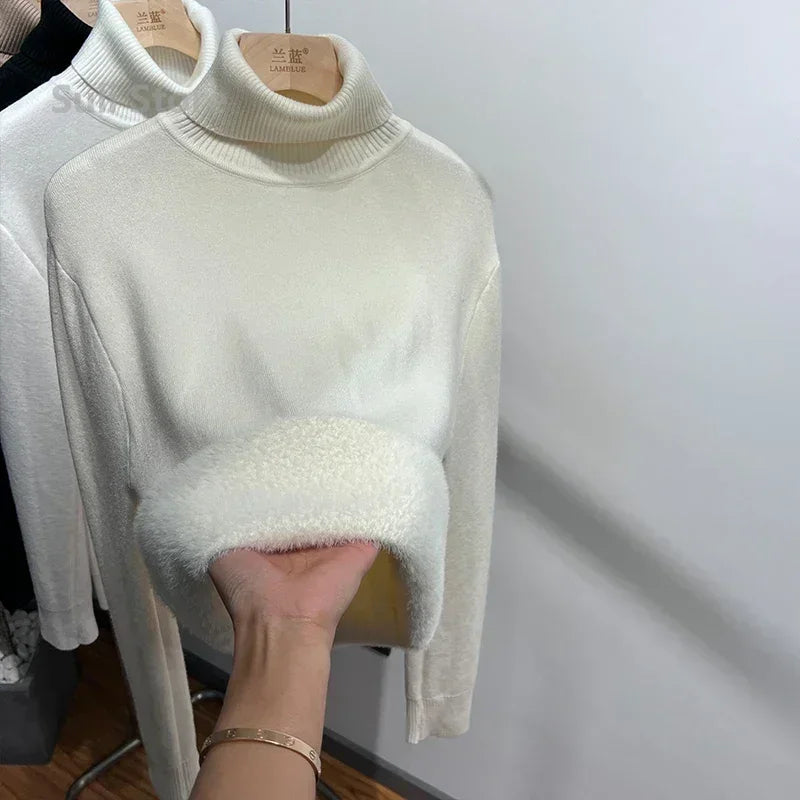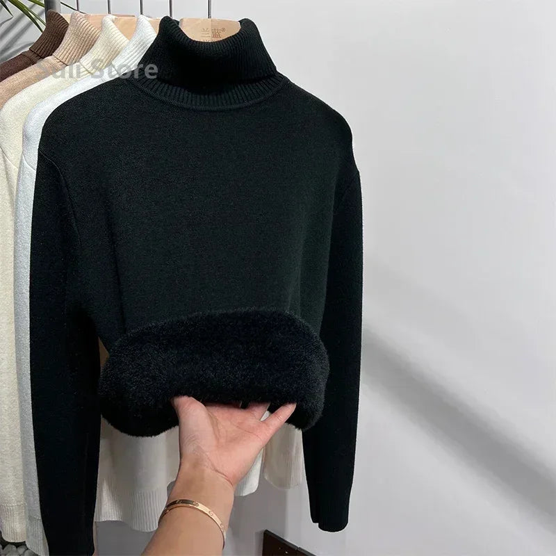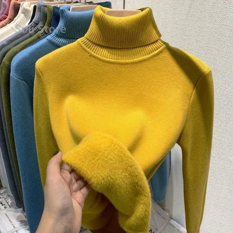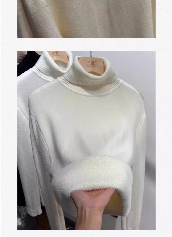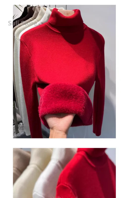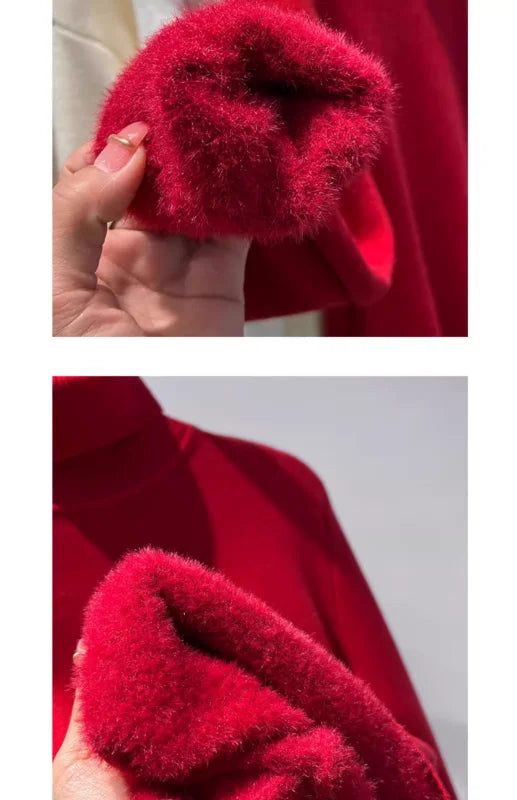Women's Turtleneck Sweater™ Retro Red with Velvet Lining Thickened Inner Wear Thermal Knitting Bottoming Shirt