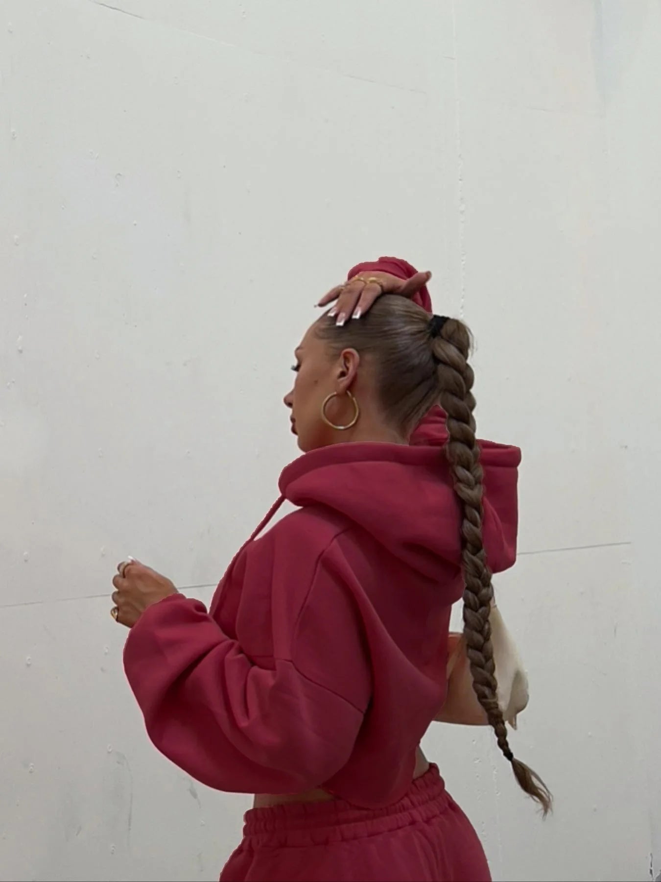 Featuring a solid color with a zip-up hoodie and drawstring waist sweatpants, this set exudes a casual yet stylish vibe.