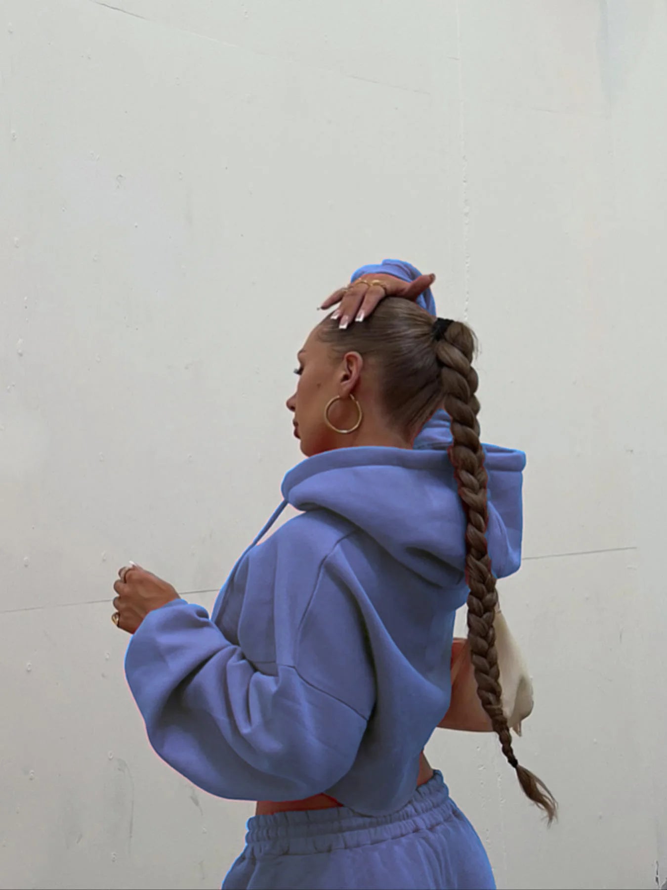 Women's Two Piece Set™ Zip Up Crop Drawstring Long Sleeve Hoodie &Drawstring Waist Sweatpant